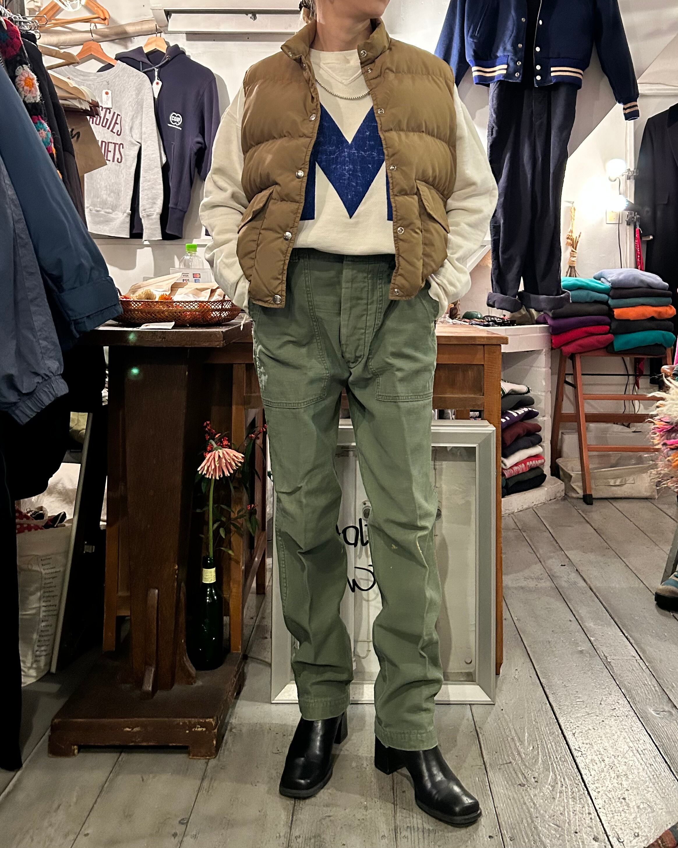 素材表記タグ欠損ため詳細不明ですが、恐らく、シェルはナイロン、インサレーションはダウン。
