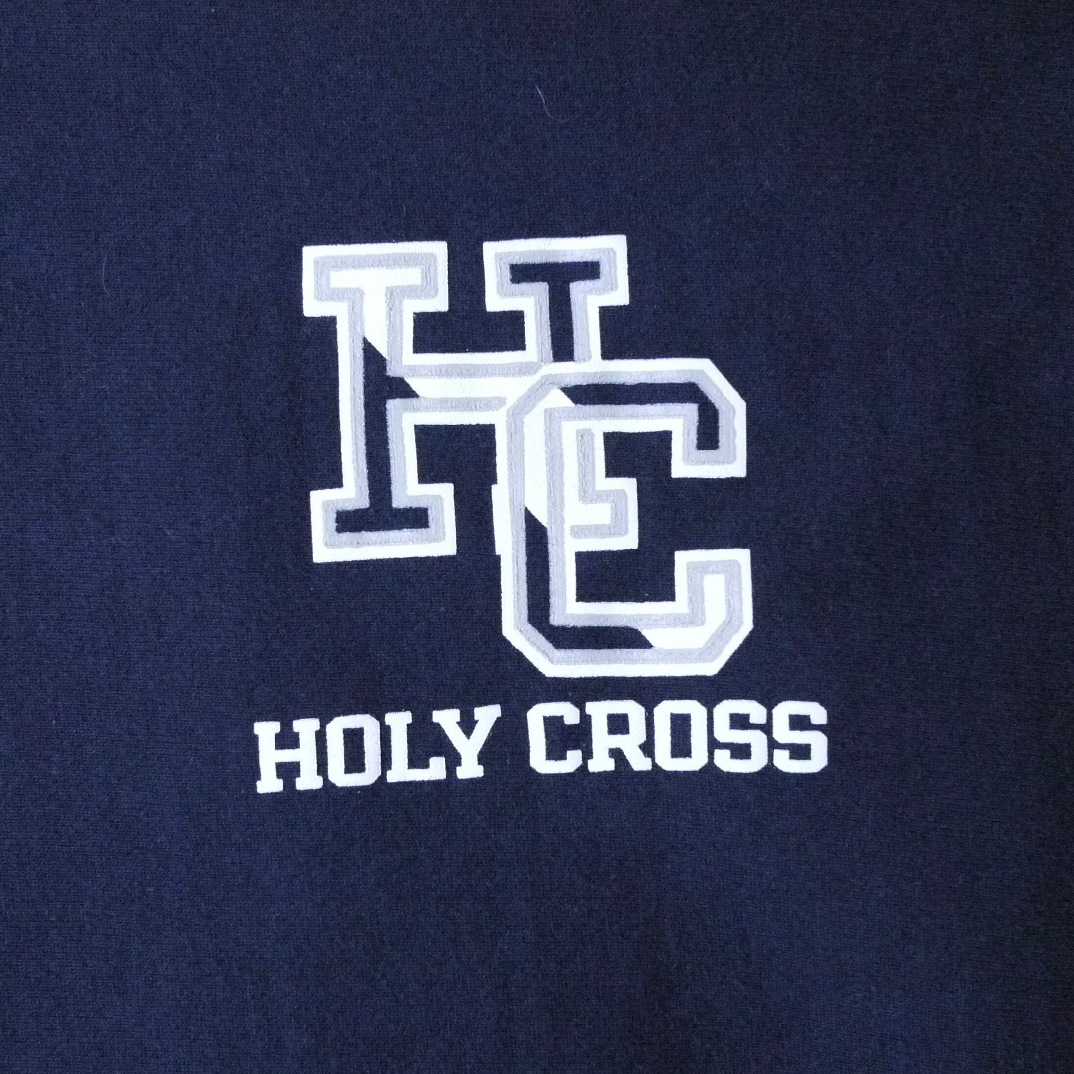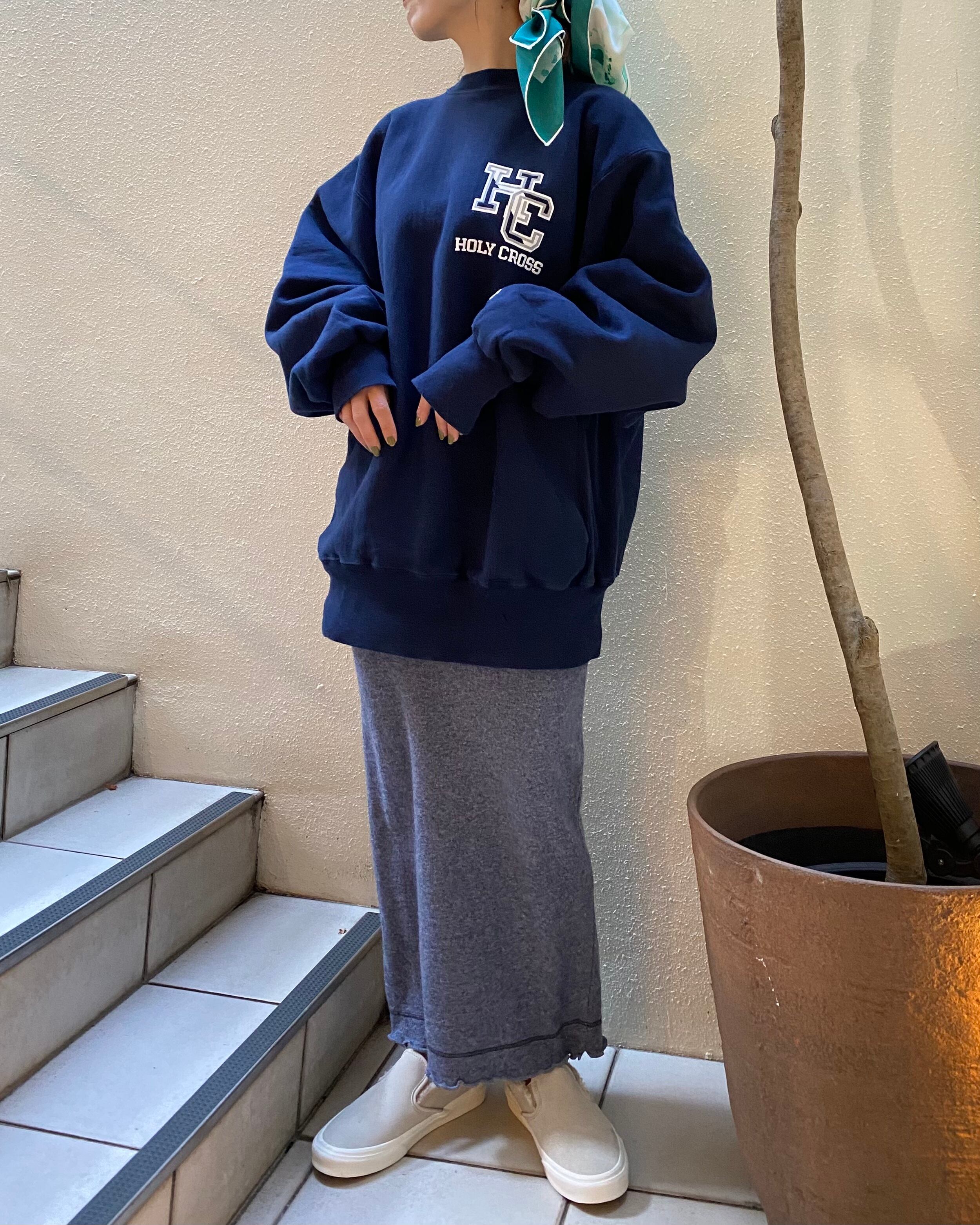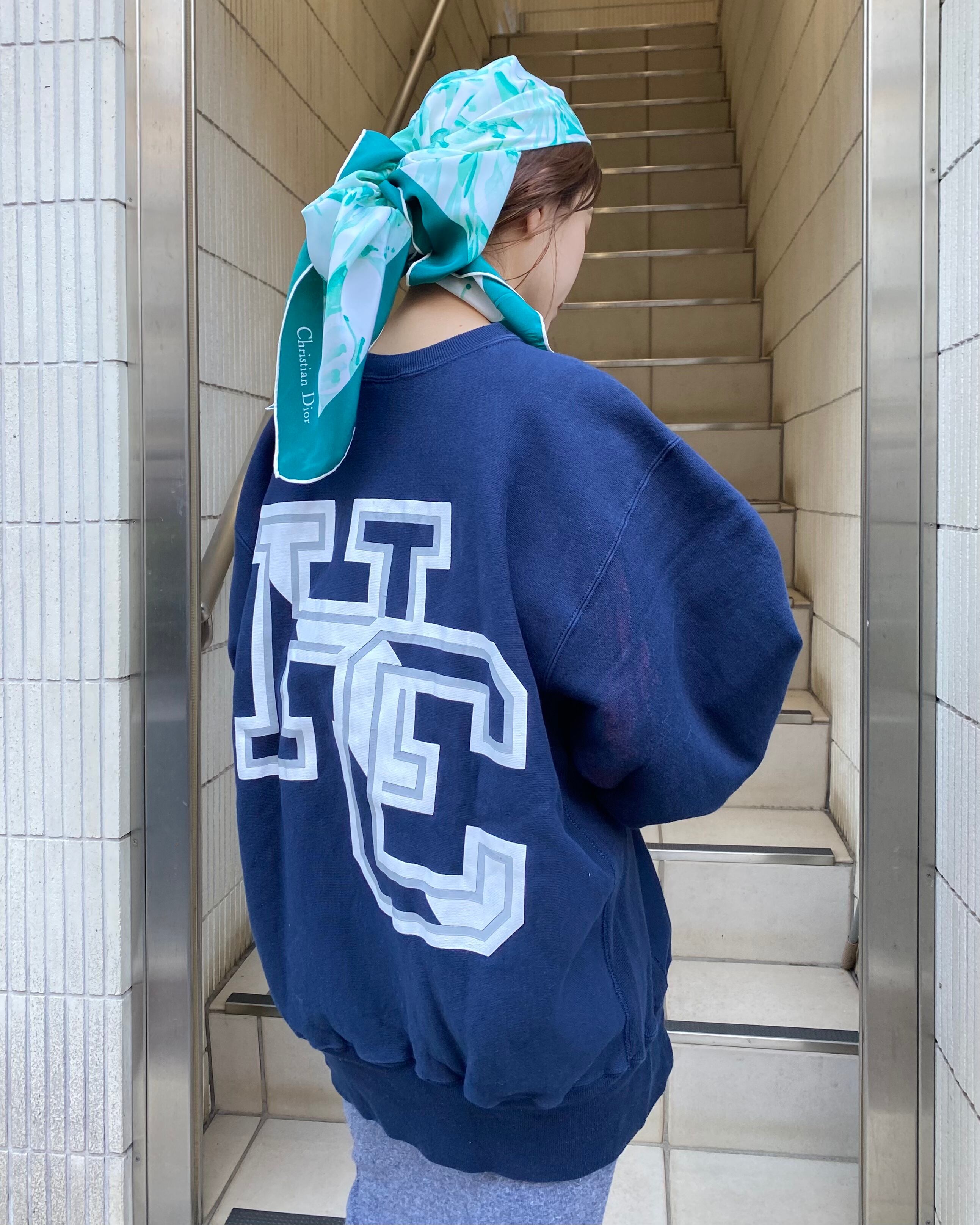 ネイビーのボディにカレッジプリントのリバースウィーブ。