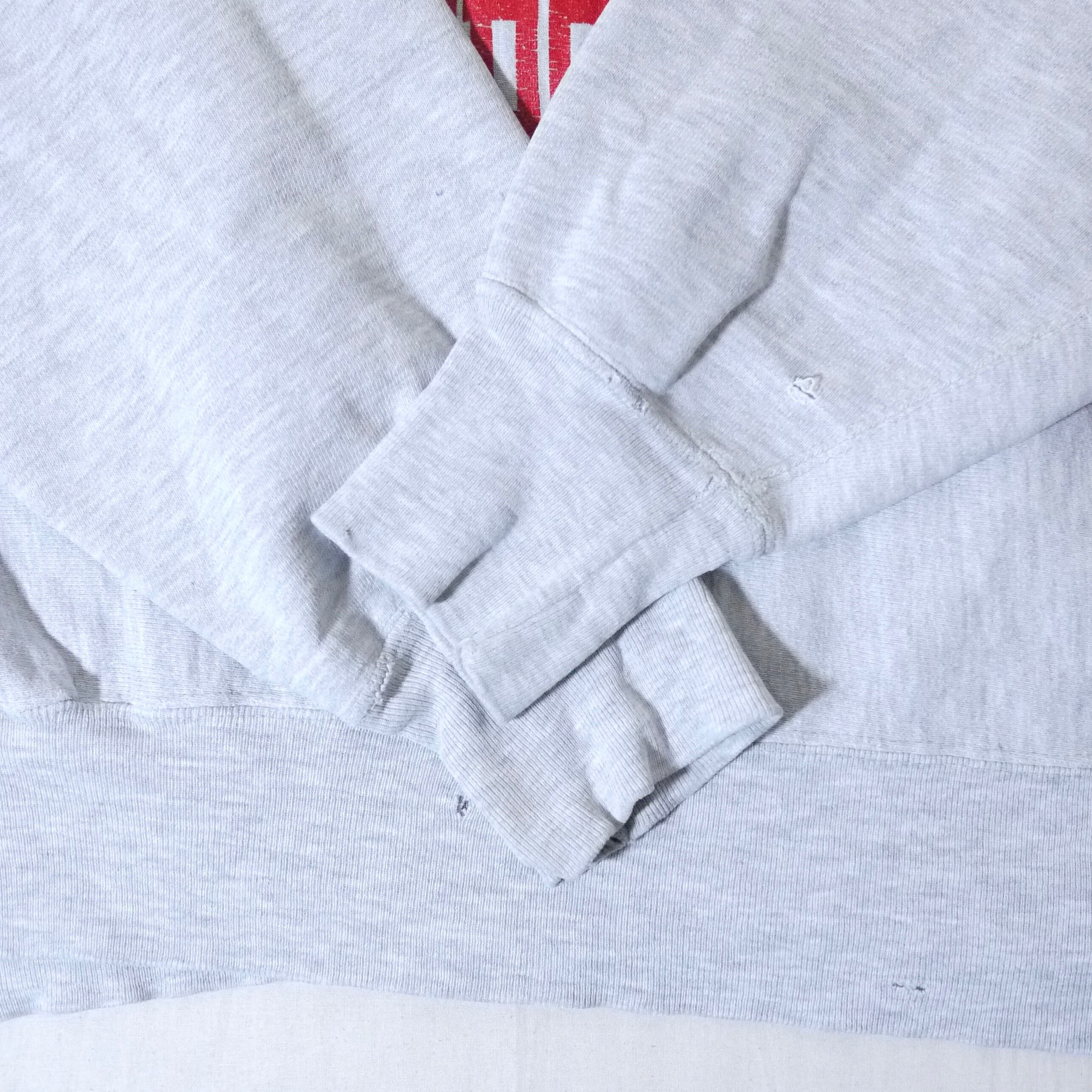 グレーのボディにカレッジプリントのリバースウィーブ。