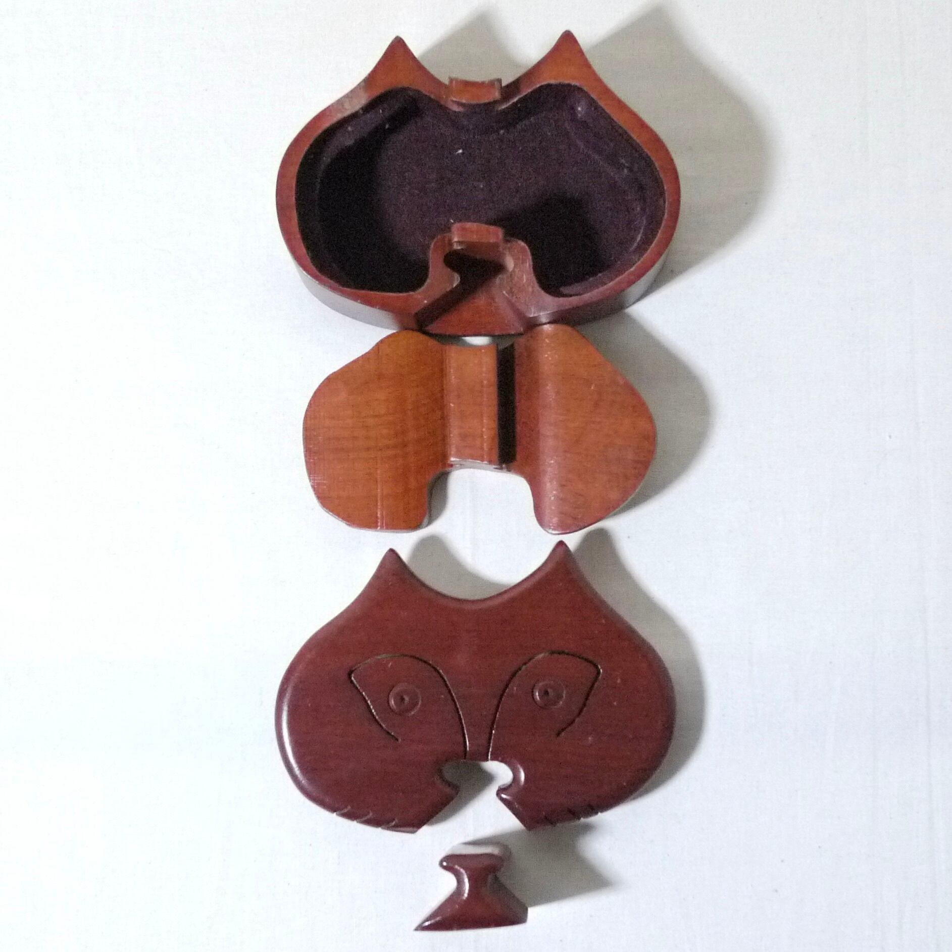口を上に外し、顔を手前に外すことで蓋が開き、内蓋を開けると小物を入れることができます。