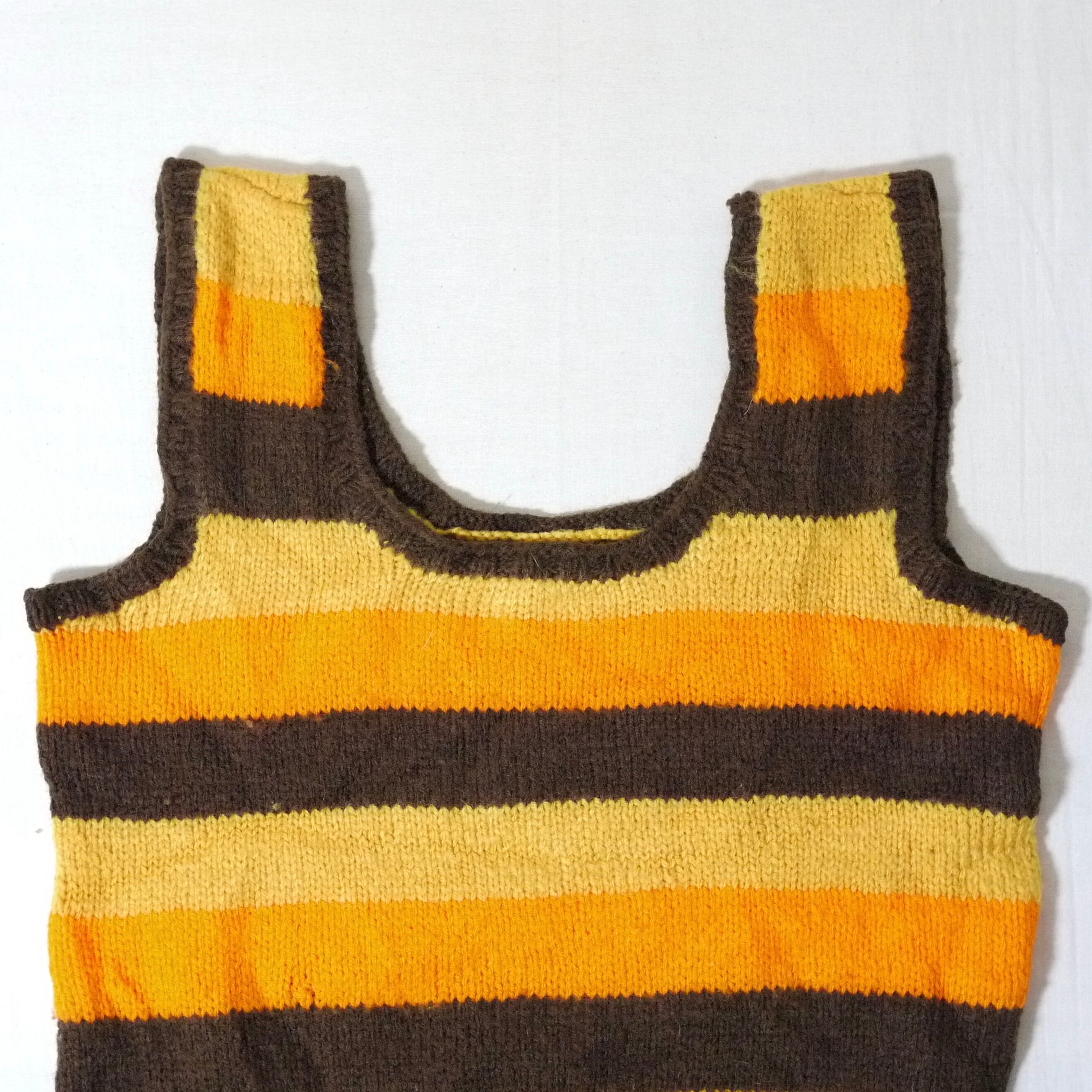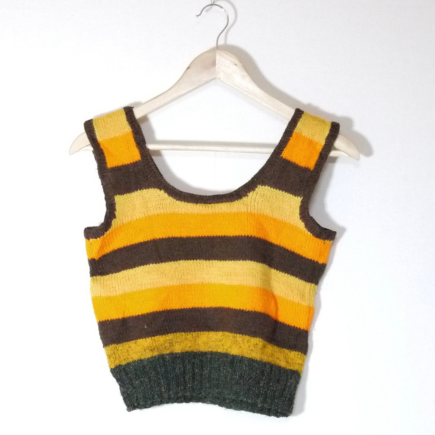 オレンジ系カラーのボーダー柄ニットベスト。
