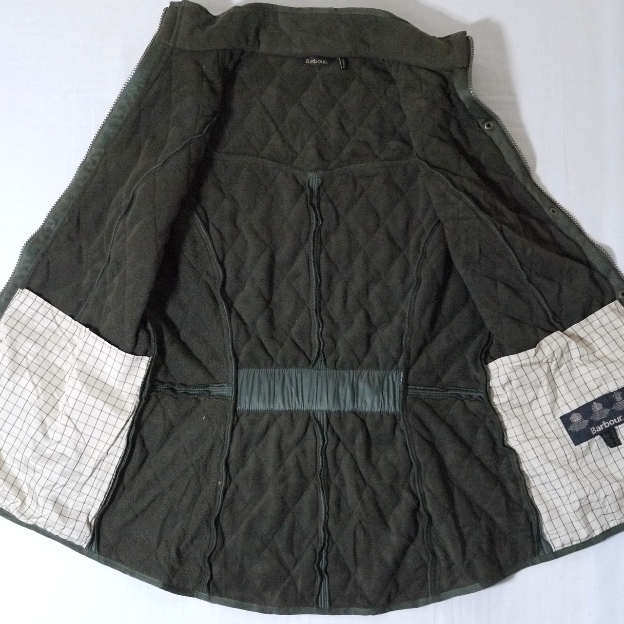 Barbourの持つ正統さやメンズライクな雰囲気で甘さを調整するコーディネートがオススメ。