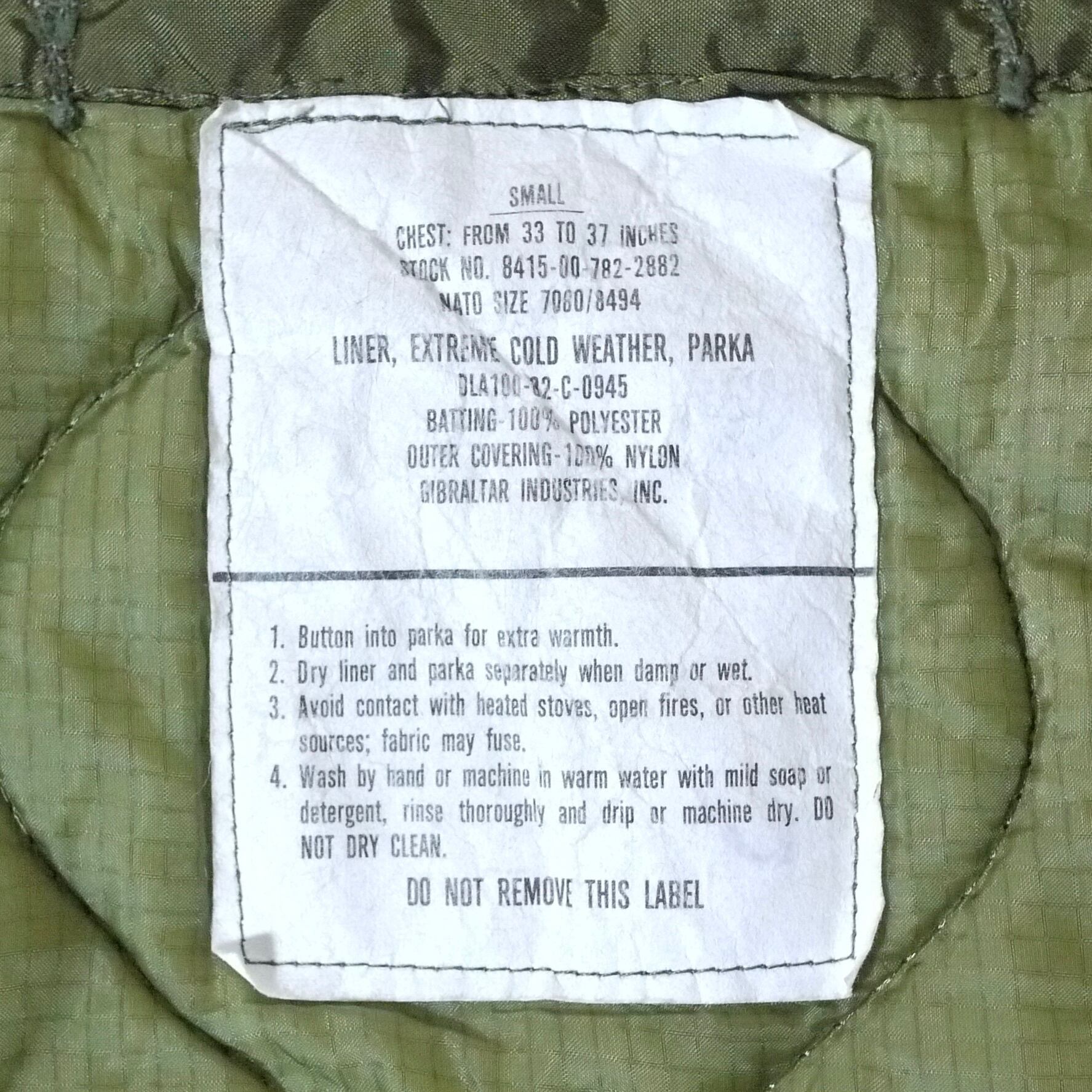 U.S.ARMY、80年代頃のM-65フィッシュテールパーカのライナー。