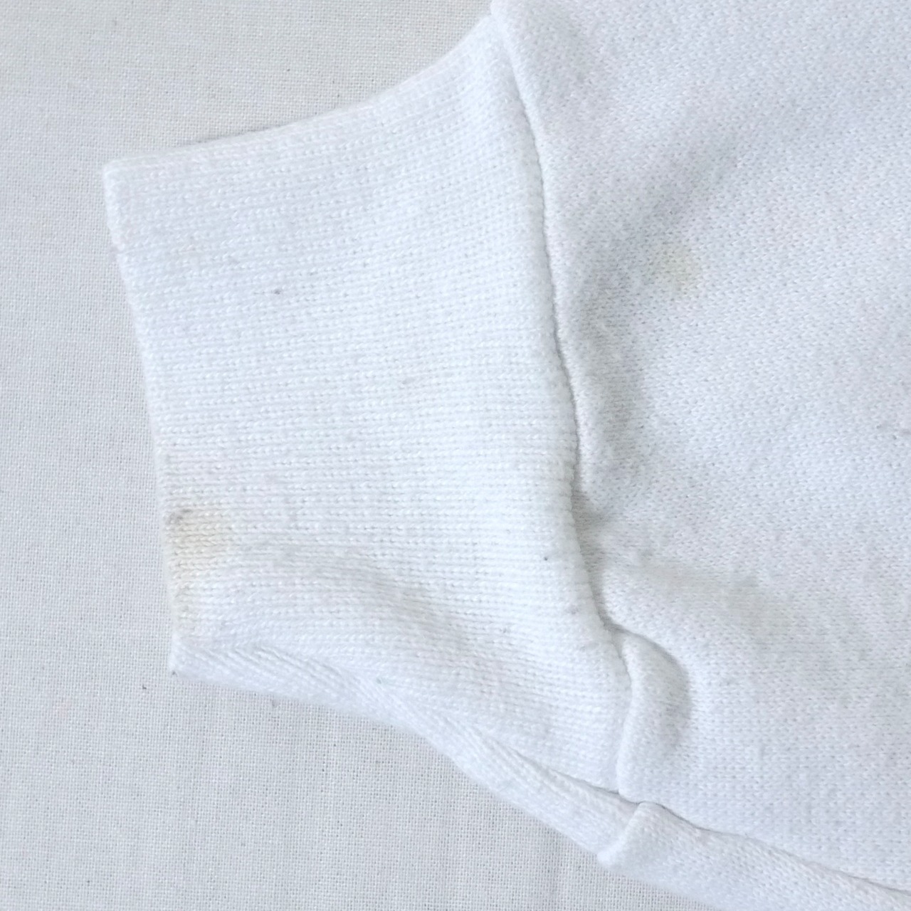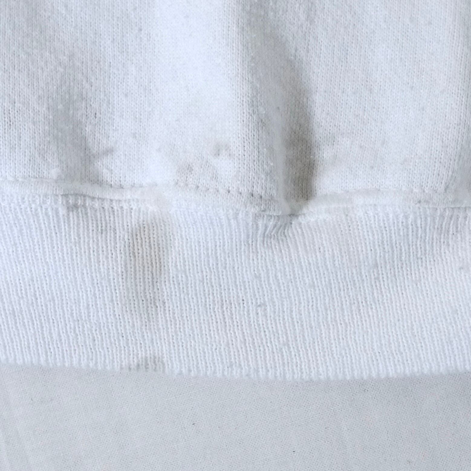 状態は、両袖のリブに使用感と細かな汚れ。右袖の袖口付近にシミ。左脇付近に小さな汚れ。左脇の裾のリブに汚れ。全体的に毛玉ができ始めています。その他、経年による使用感がありますが、着用に問題はありません。コンディションにご理解のある方にお願いします。