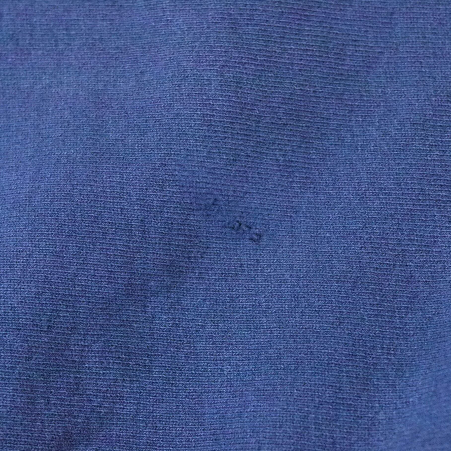 状態は、ネックのリブにほつれと周辺に使用感。お腹付近にシミ。右袖の肩付近に小さなダメージ。両袖の袖口付近に汚れとステッチ部分にほつれ。その他、全体的に経年による使用感はありますが、着用に問題はありません。