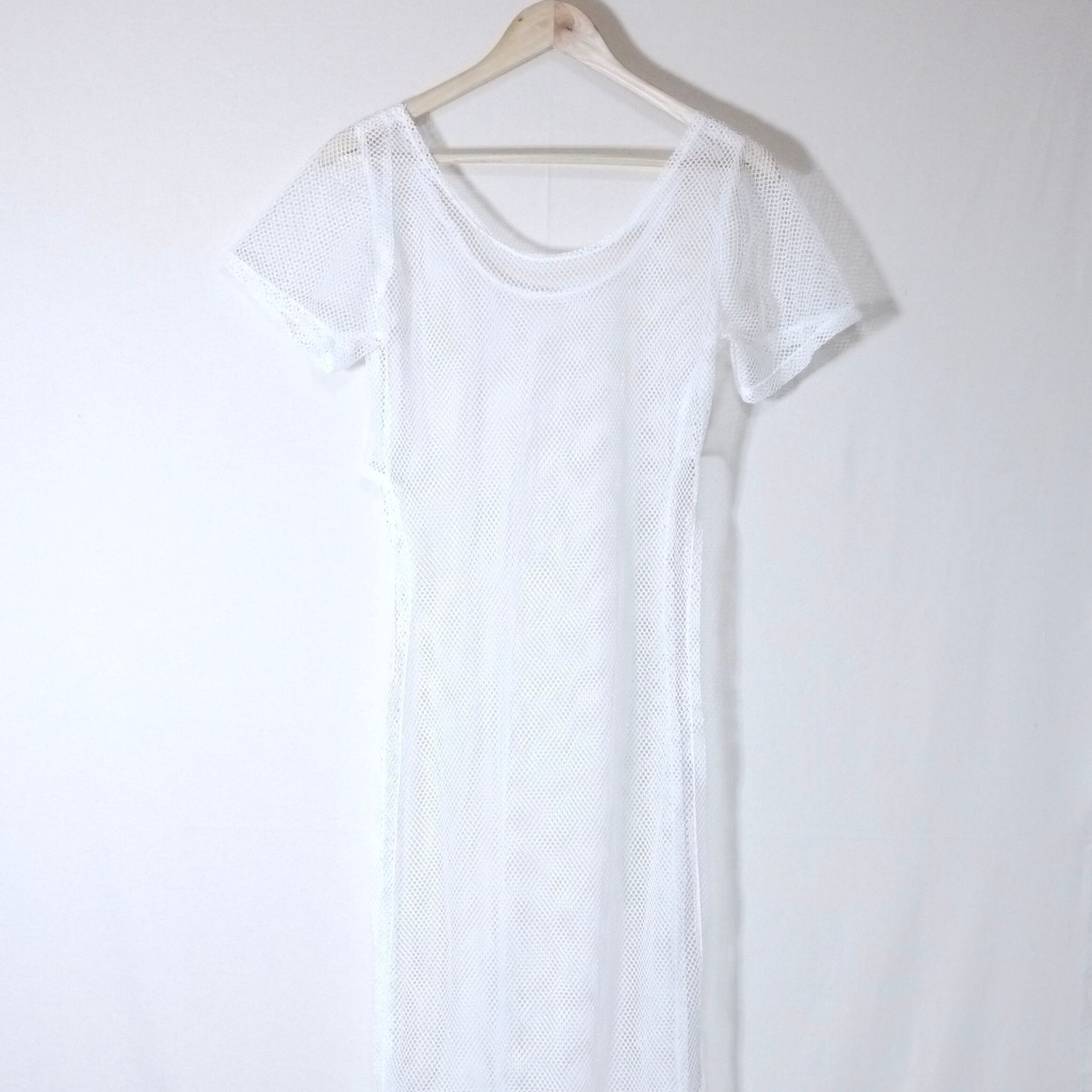 ホワイトカラーのメッシュワンピース。
