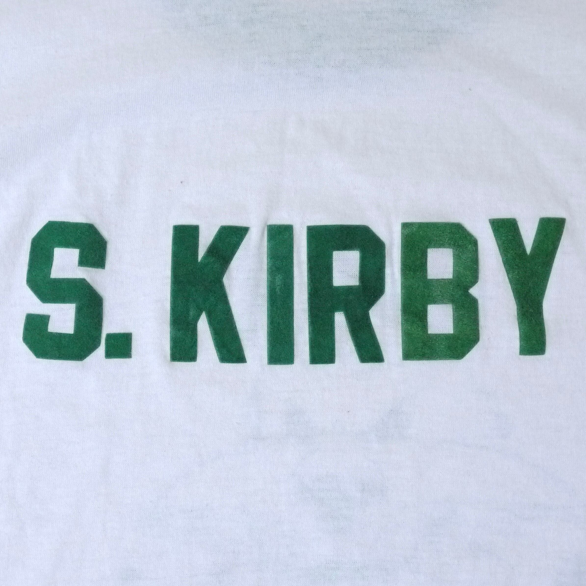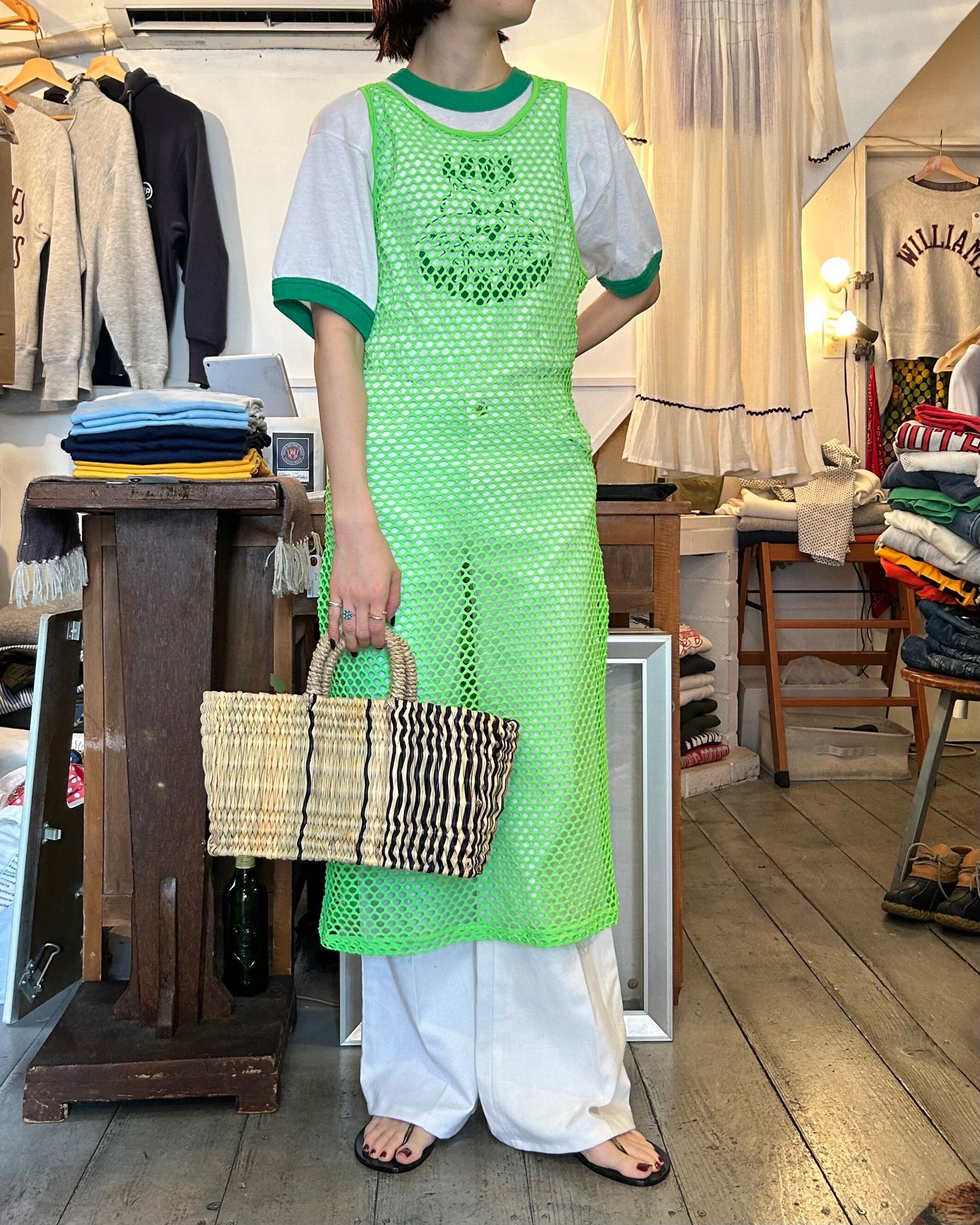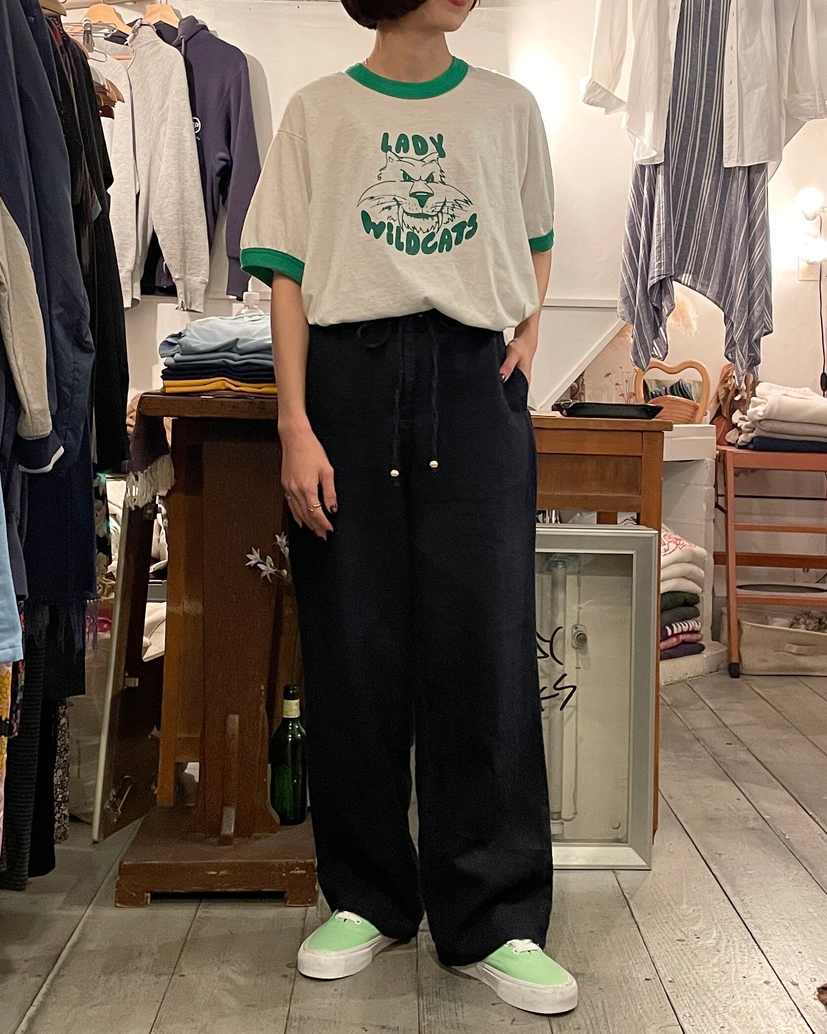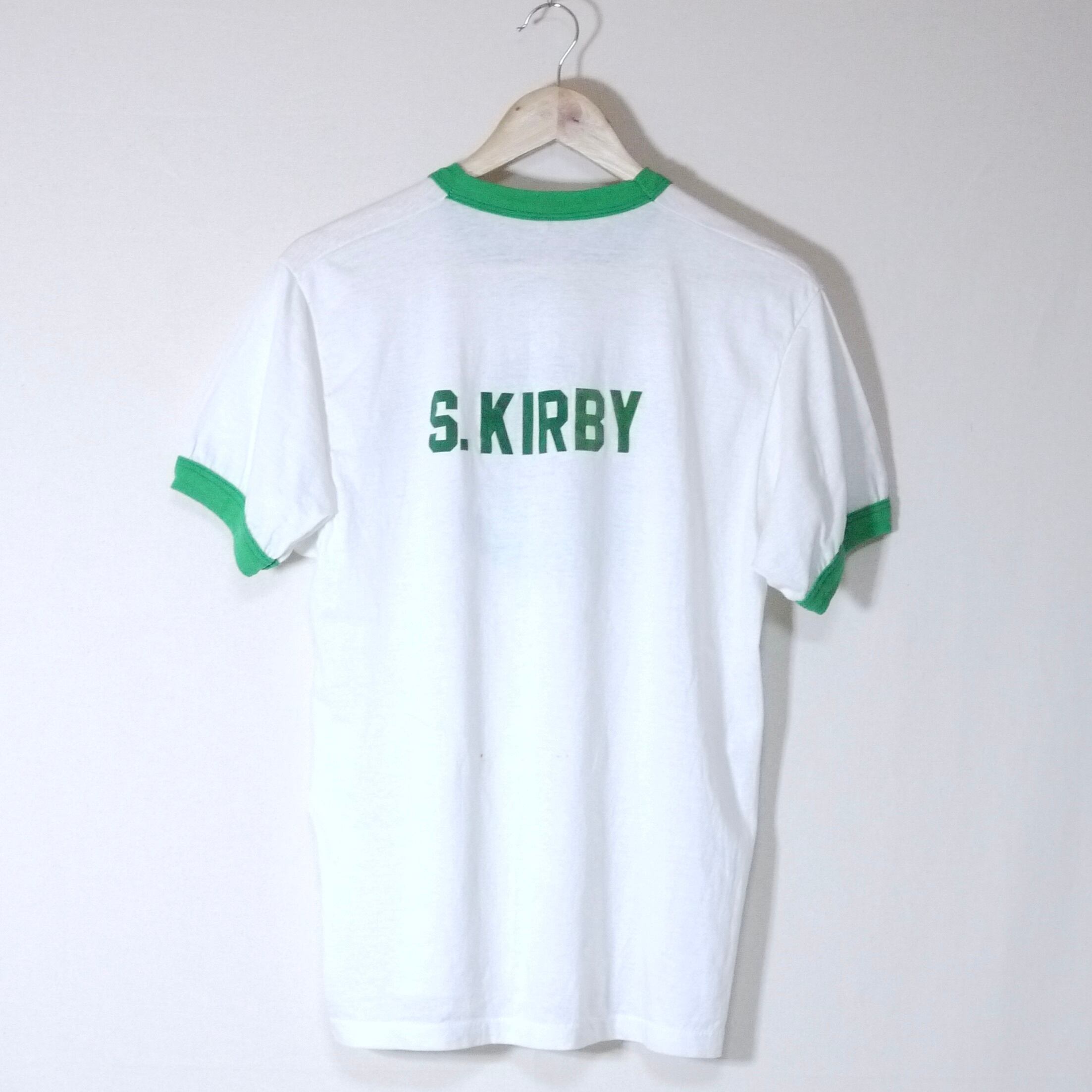 ホワイトカラーのボディにグリーンのリンガーTシャツ。