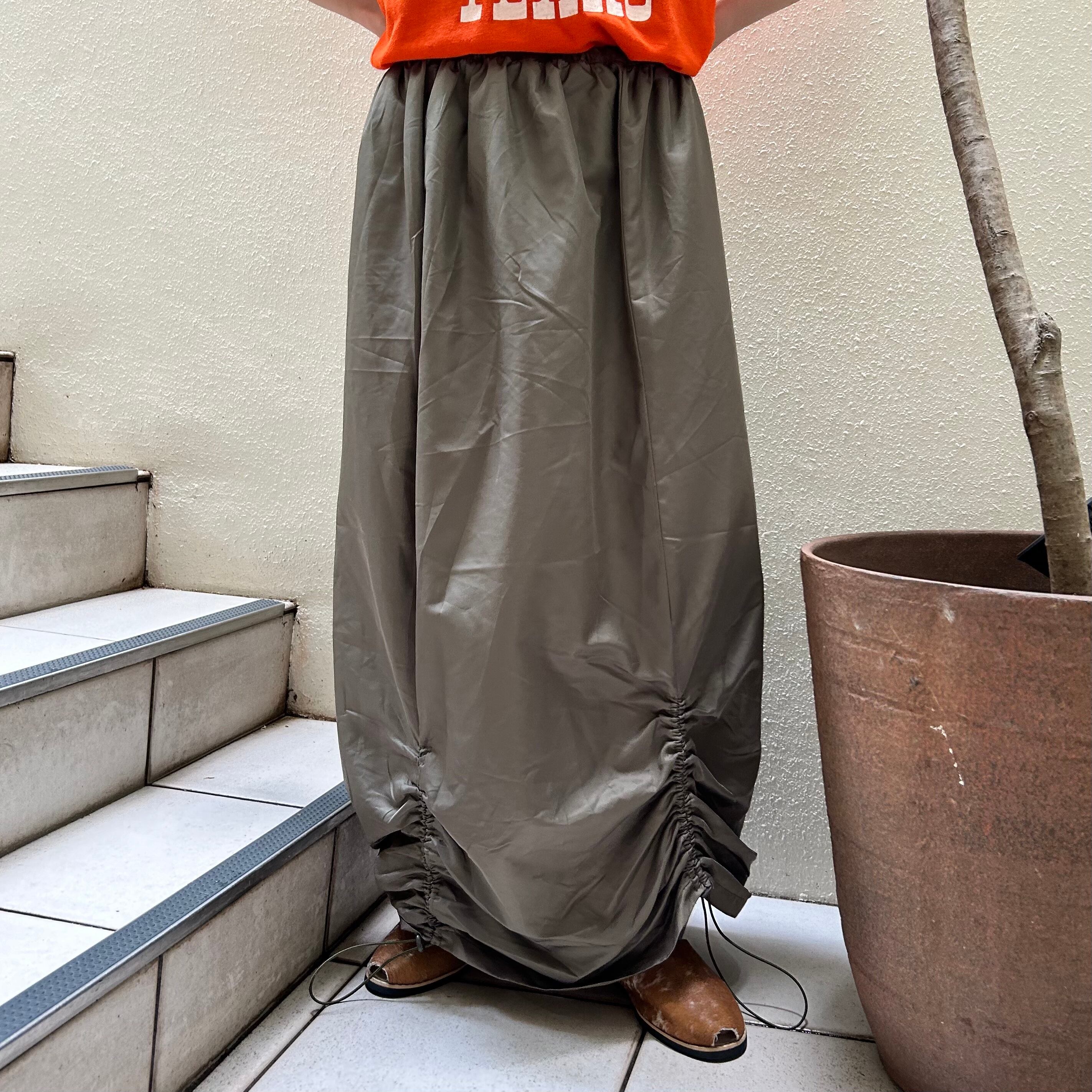 オリーブカラーのスカート。