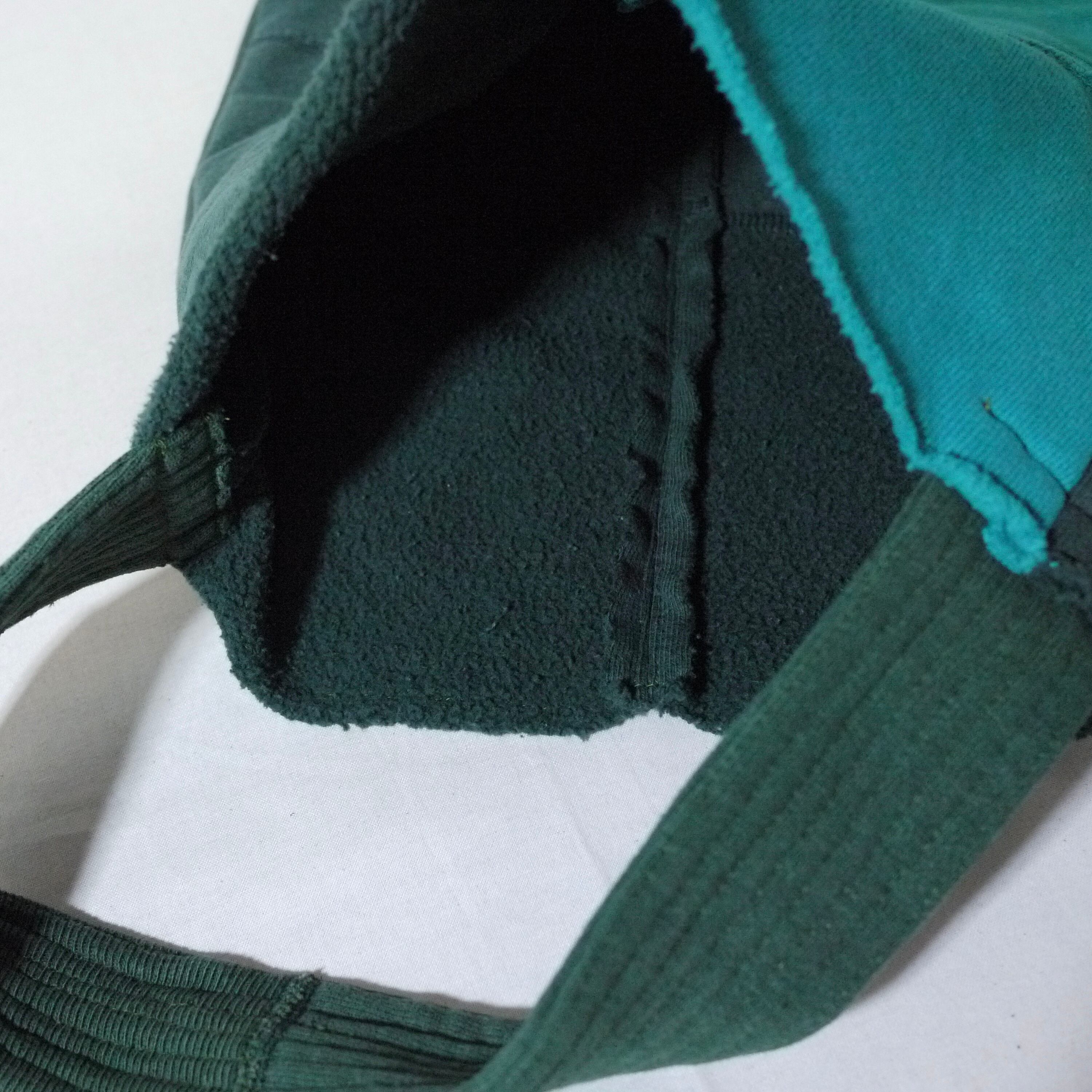 同系色の異なるREVERSE WEAVEの生地によるパッチワークデザイン。
