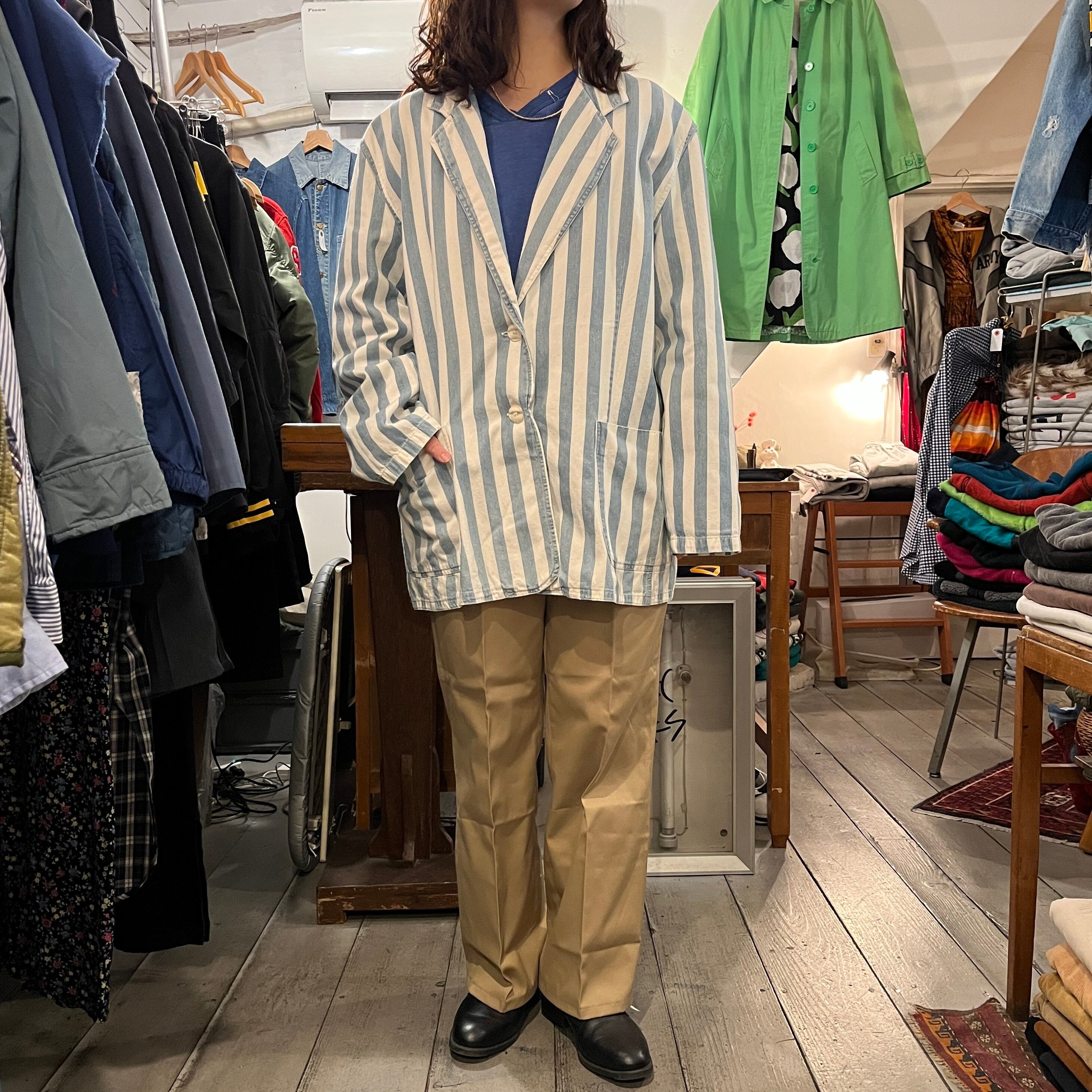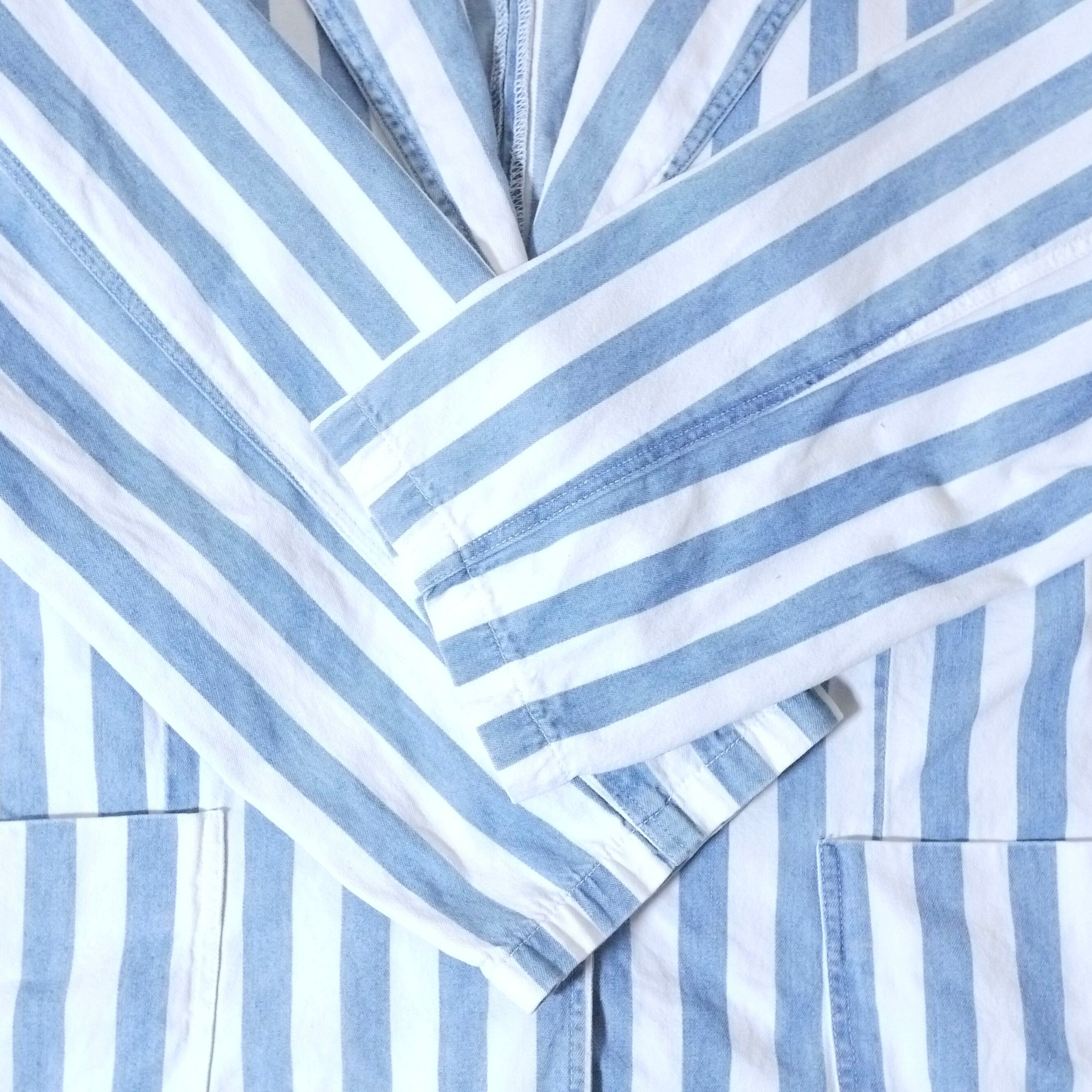 ライトブルー×ホワイトのストライプ柄ジャケット。
