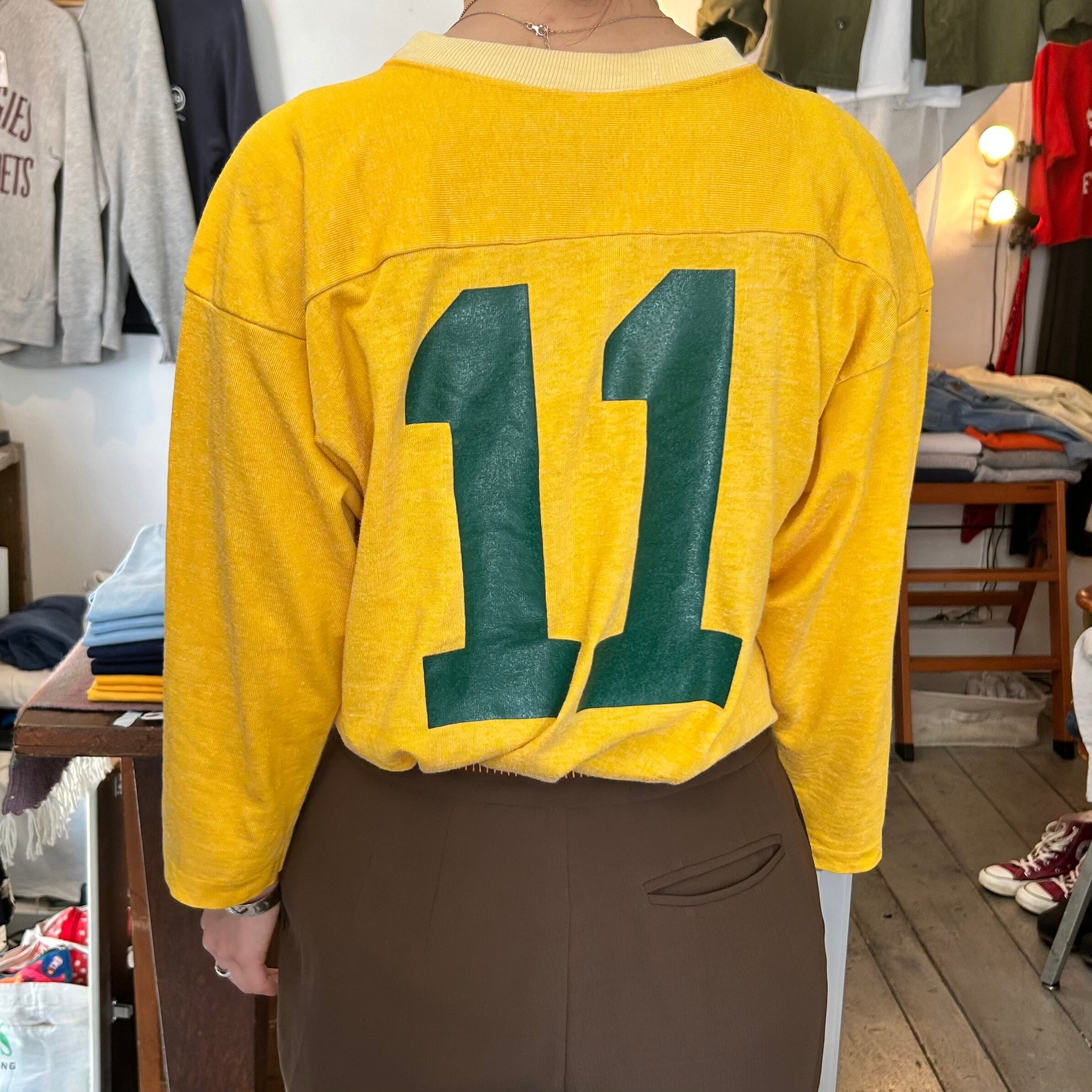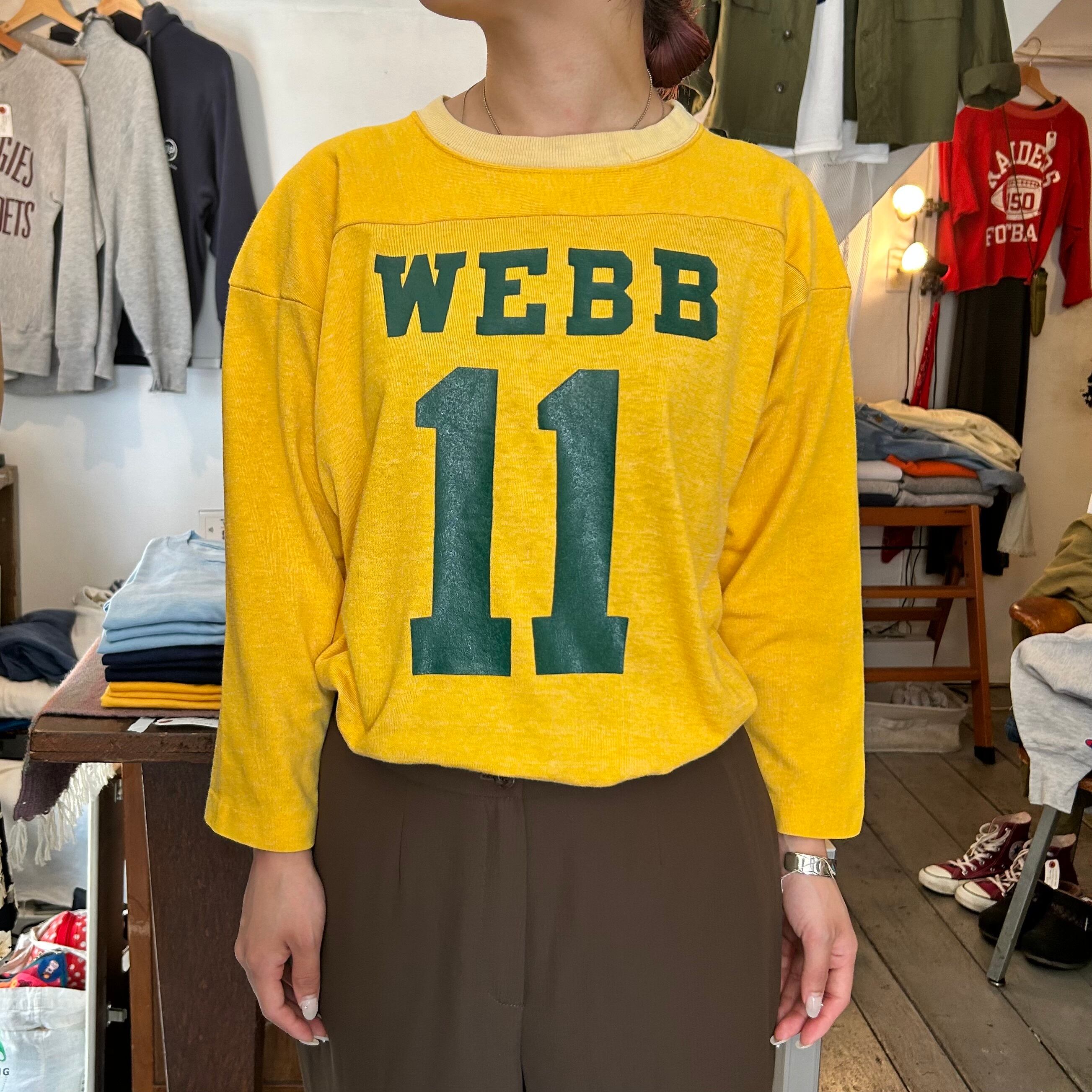 シンプルなフットボールTシャツタイプのデザインで九部袖。