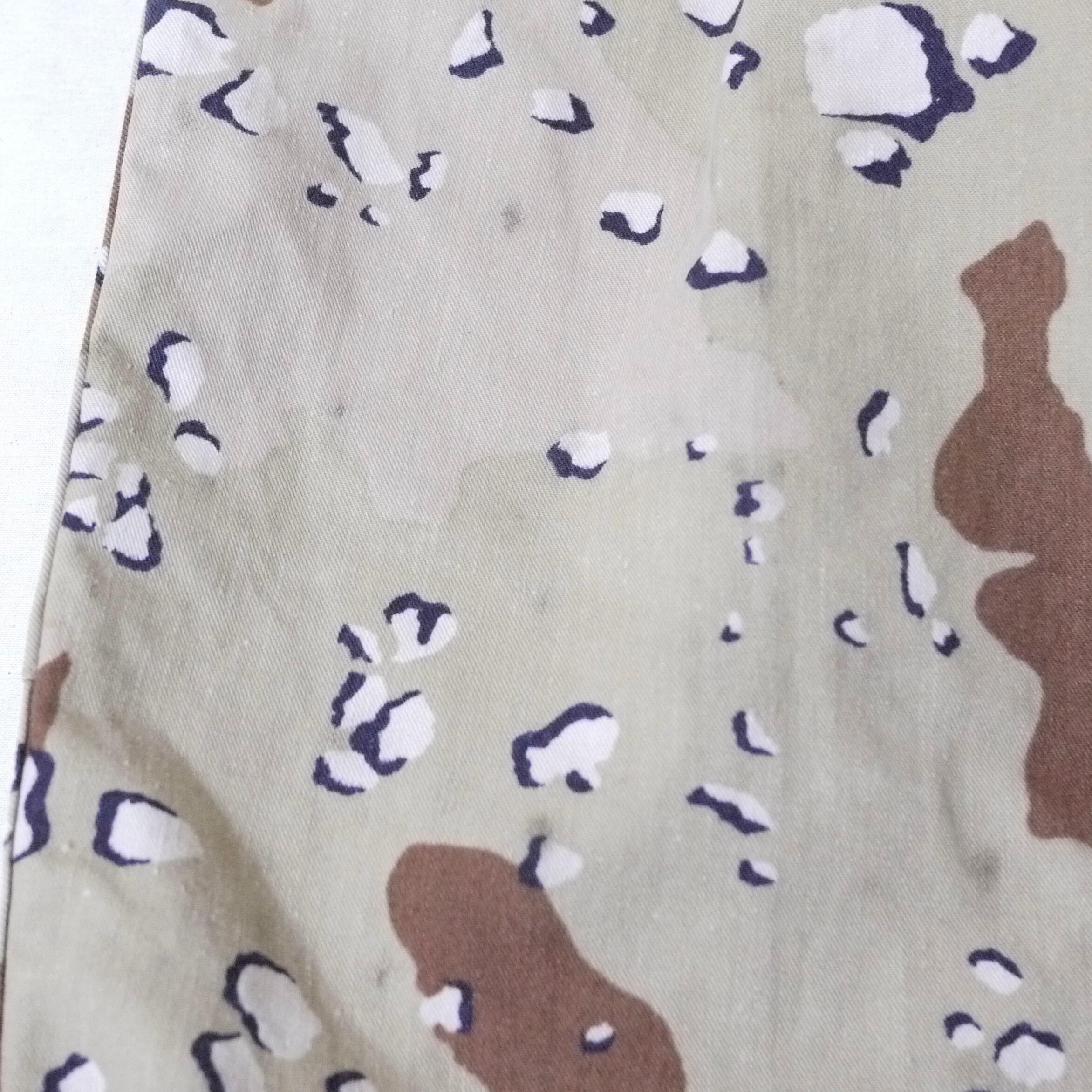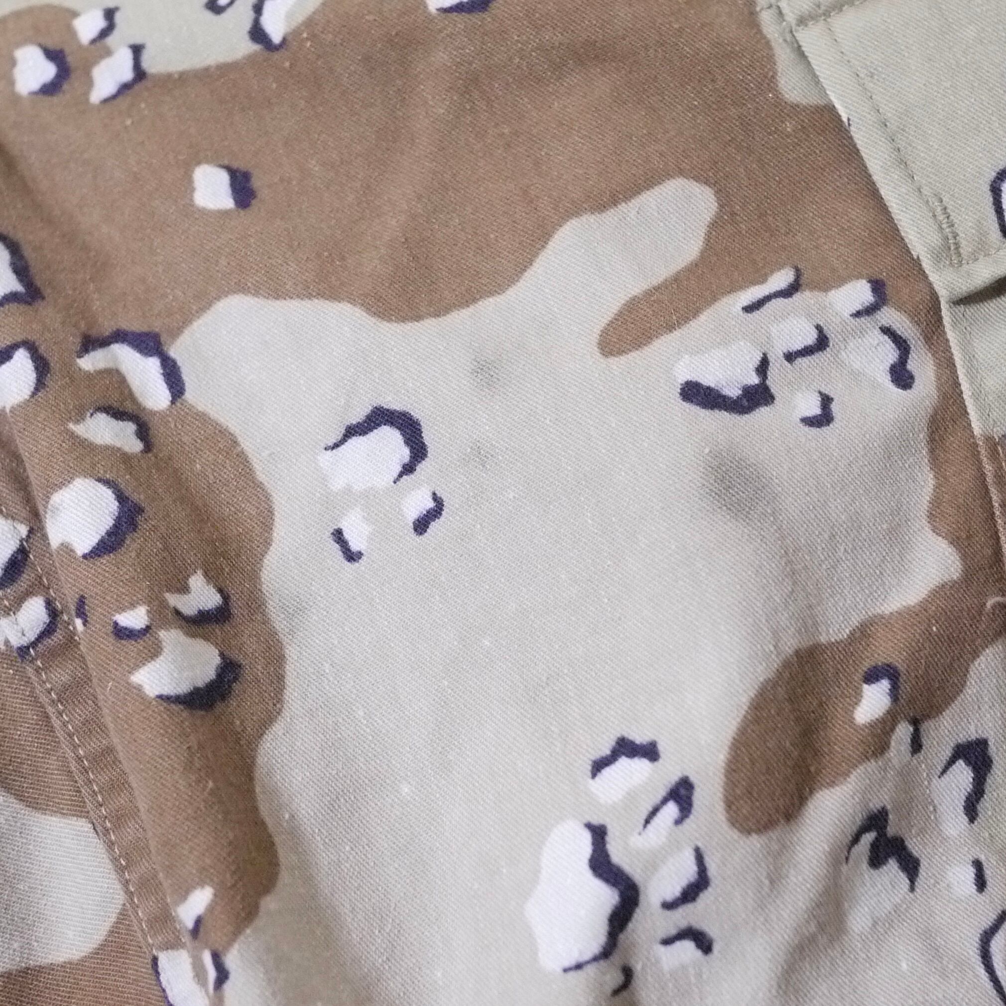 ノンリップ地で通称"チョコチップ"と呼ばれる6色で作られた初代砂漠用迷彩柄。