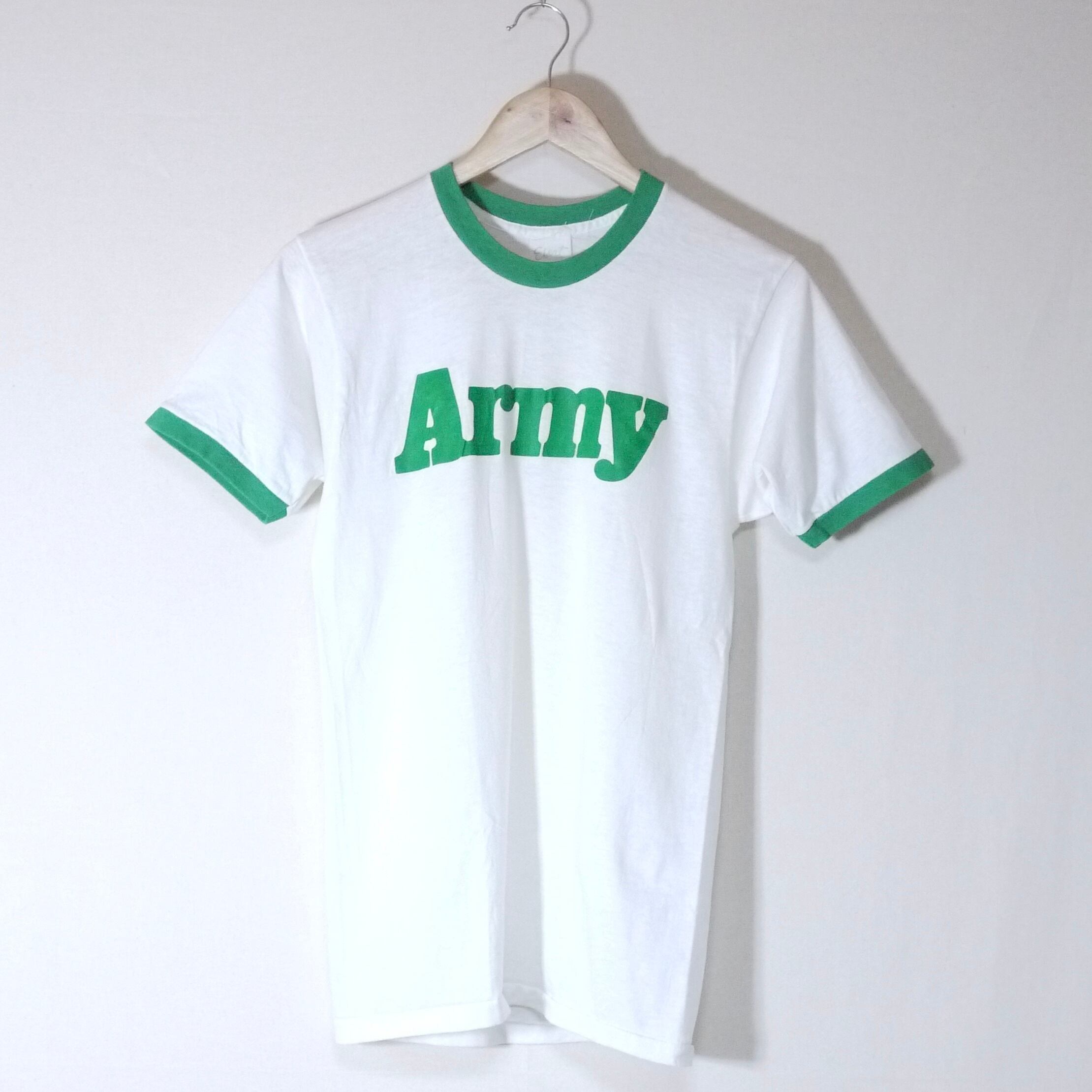 ホワイトカラーのボディにグリーンのリンガーTシャツ。