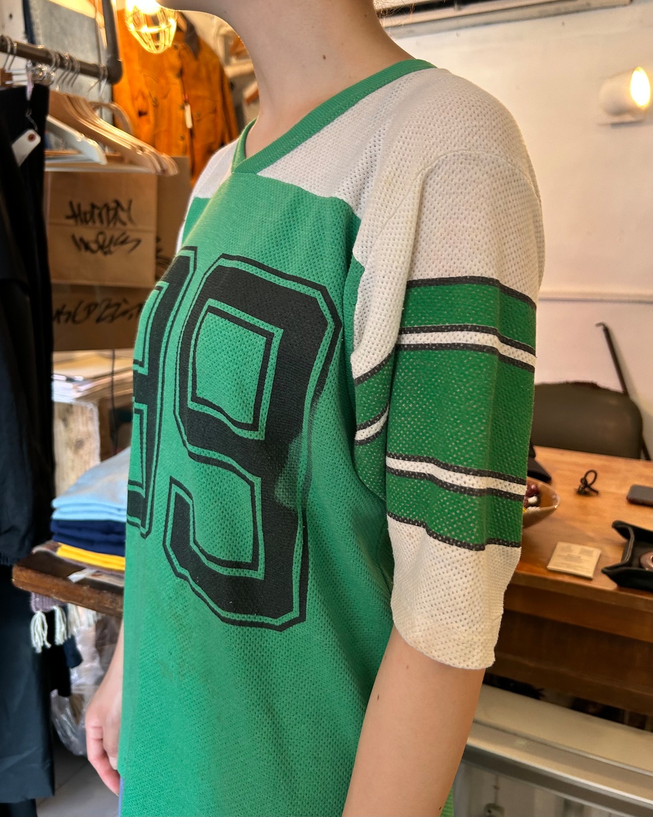 グリーン×ホワイトのフットボールTシャツ。