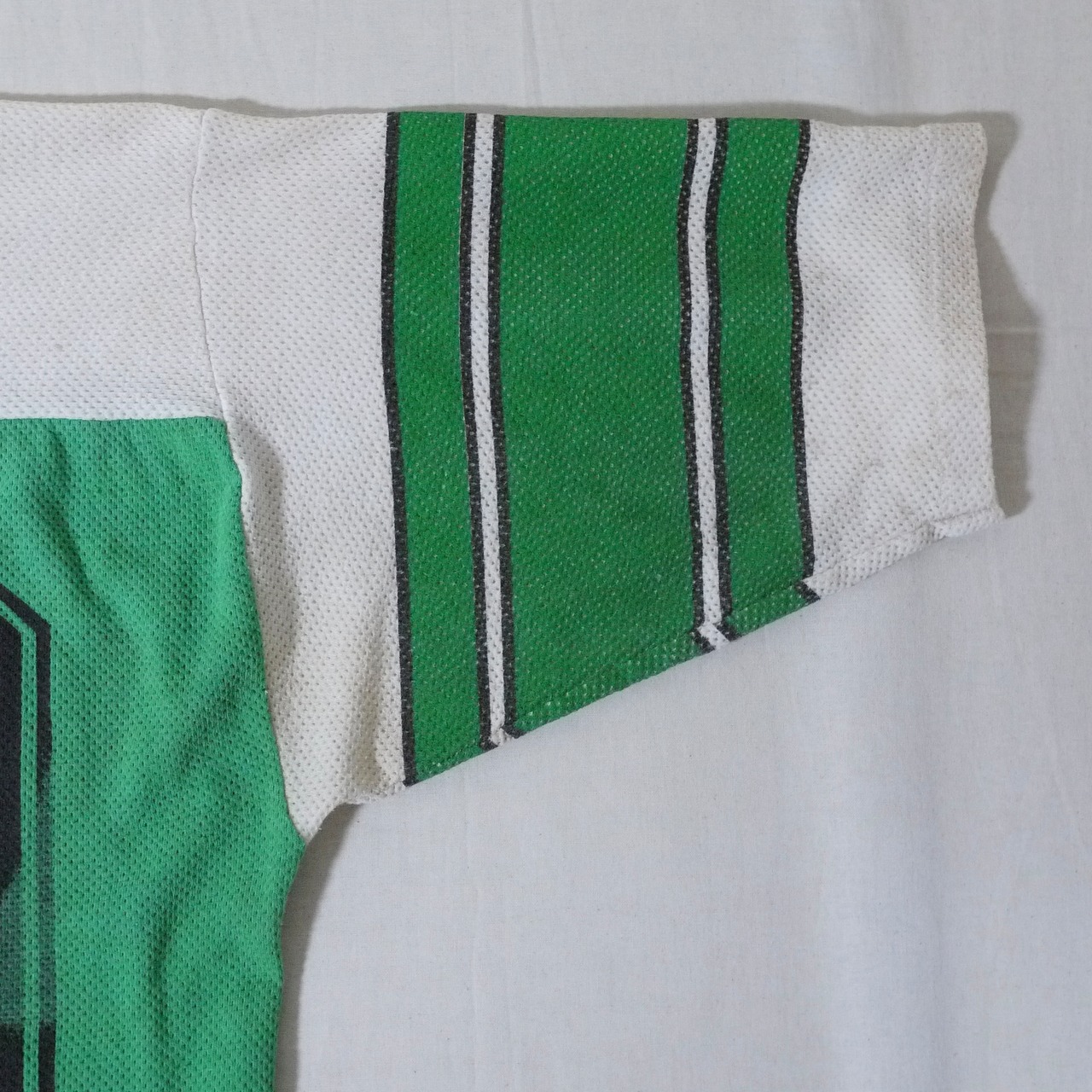 状態は、前身頃のナンバープリント部分に汚れと色抜け。ホワイトカラー部分は汚れが目立ちます。右袖に小穴。その他、経年による使用感がありますが、着用に問題はありません。コンディションにご理解のある方のお願いします。