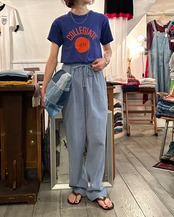 ブルーカラーのイージーパンツ。