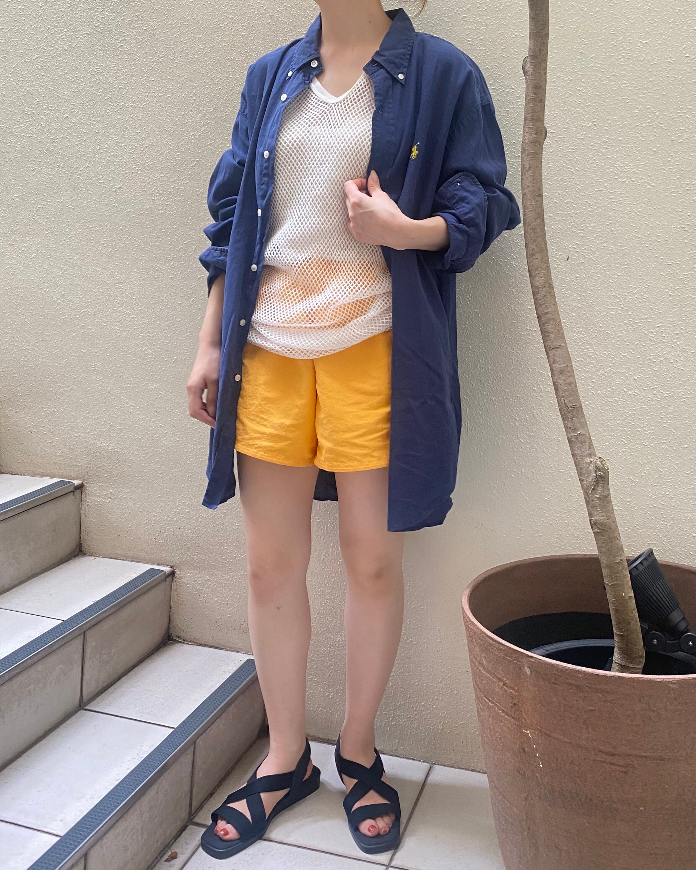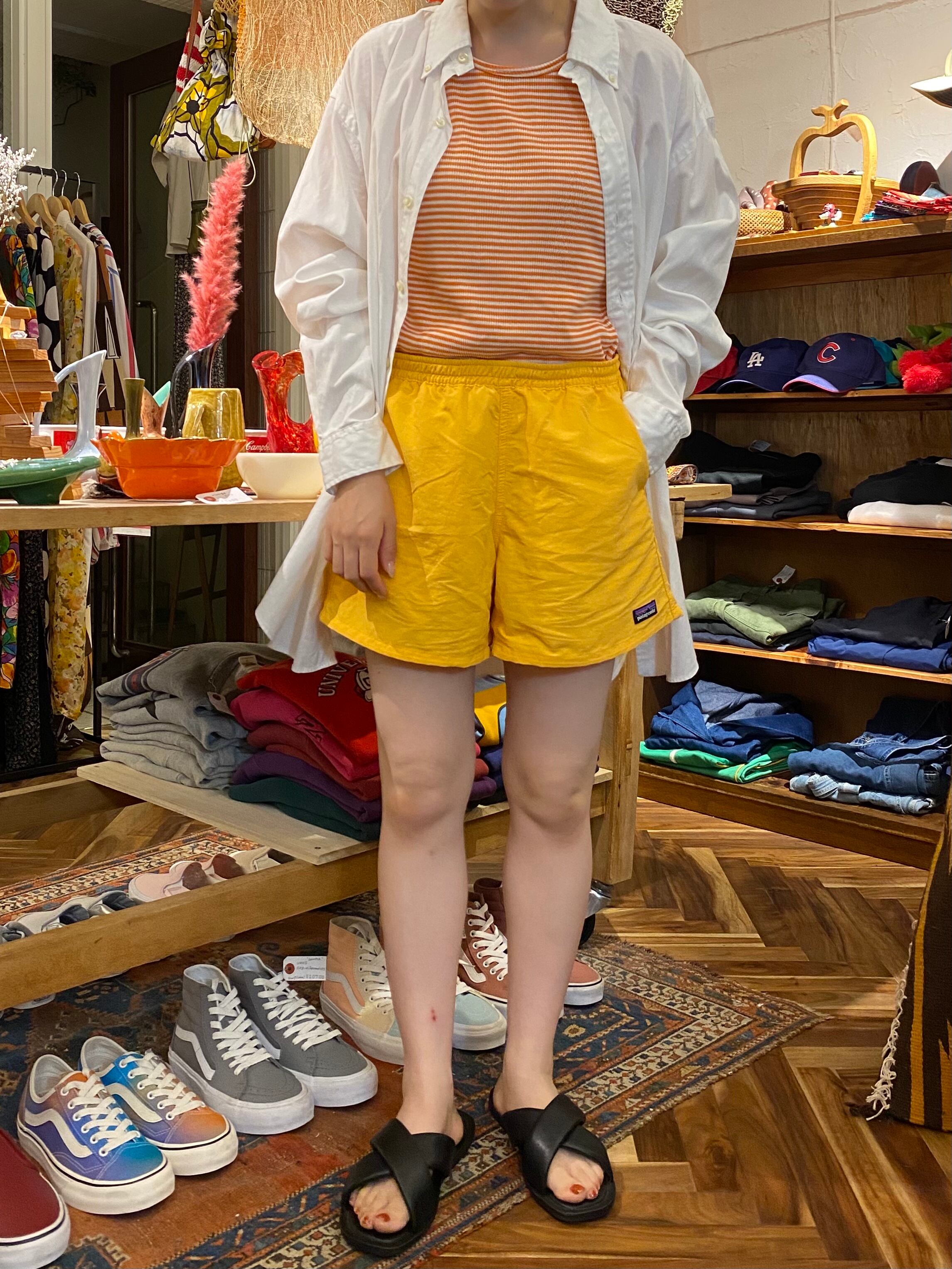 イエローカラーのナイロンショーツ。