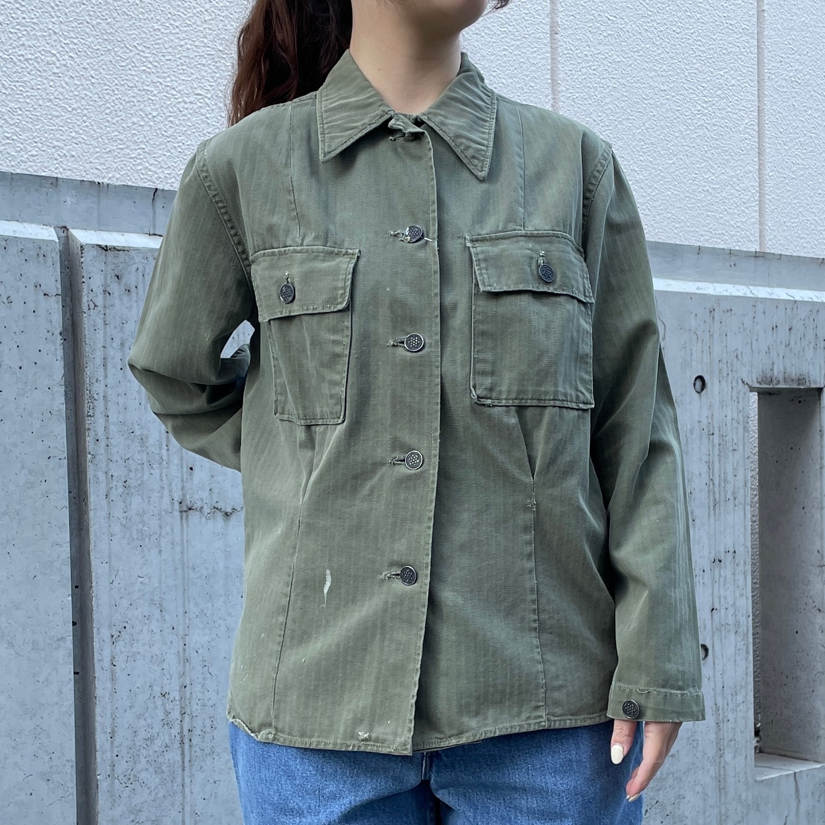 状態は、内側に前所有者と思われるネームタグ。トップボタン交換。ガスラップ欠損していますが、内側のボタンは残っています。全体的に所々に汚れ。その他、全体的に経年による使用感はありますが、着用に問題はありません。この年代のミリタリーウェアとして、コンディションにご理解頂ける方にお願いします。