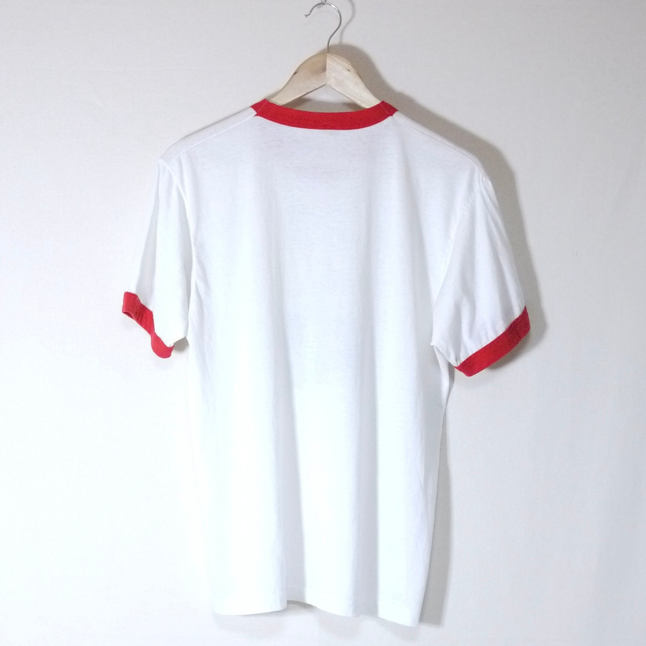 ホワイトカラーのボディにレッドのリンガーTシャツ。