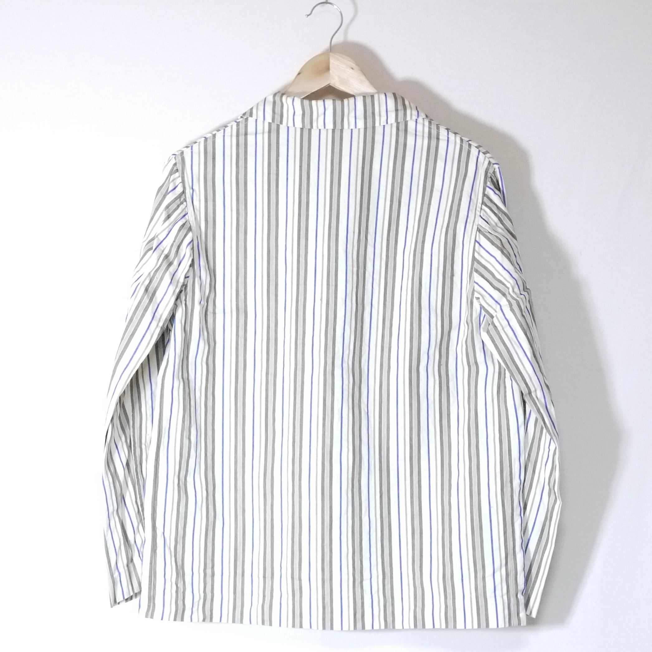 ベージュカラーをベースにマルチカラーのストライプ柄ジャケット。