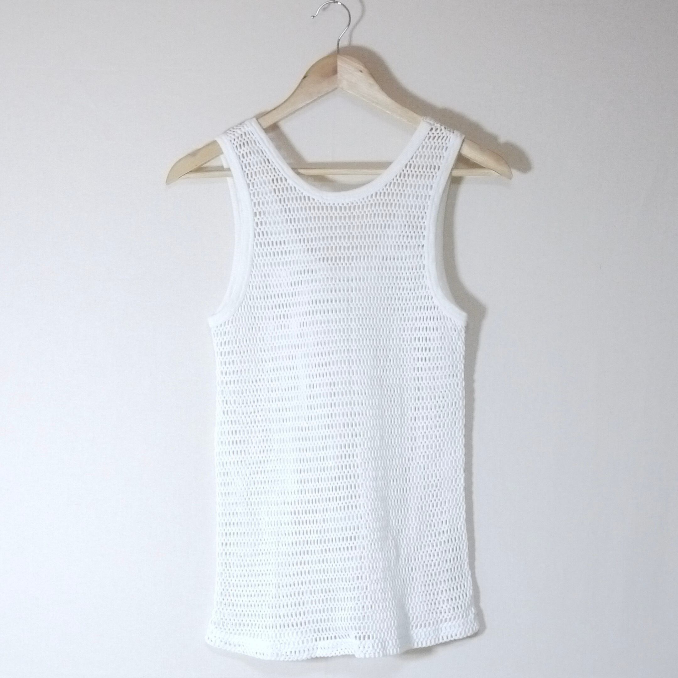 ホワイトカラーのメッシュデザインのタンクトップ。