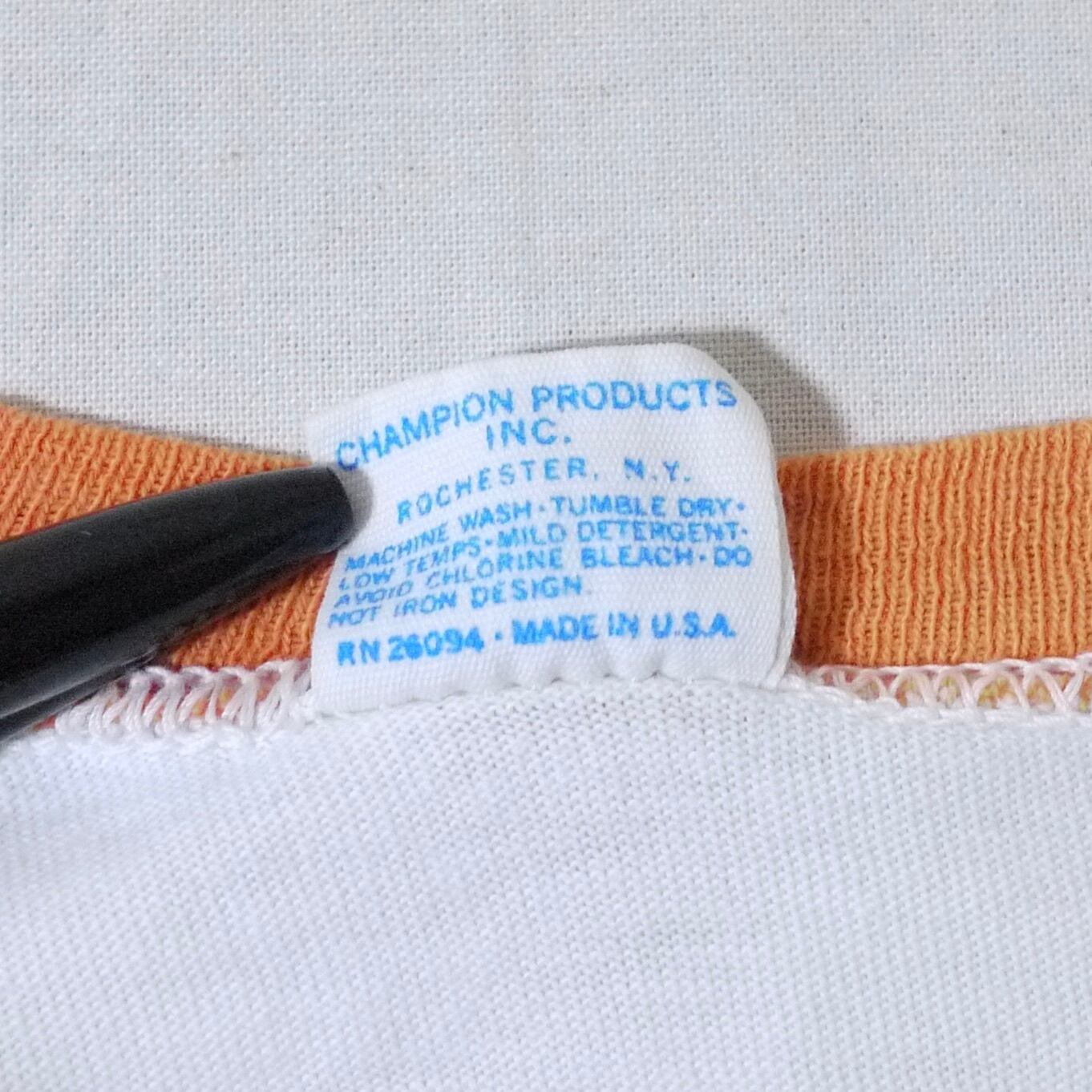 ホワイトカラーのボディにオレンジのリンガーTシャツ。