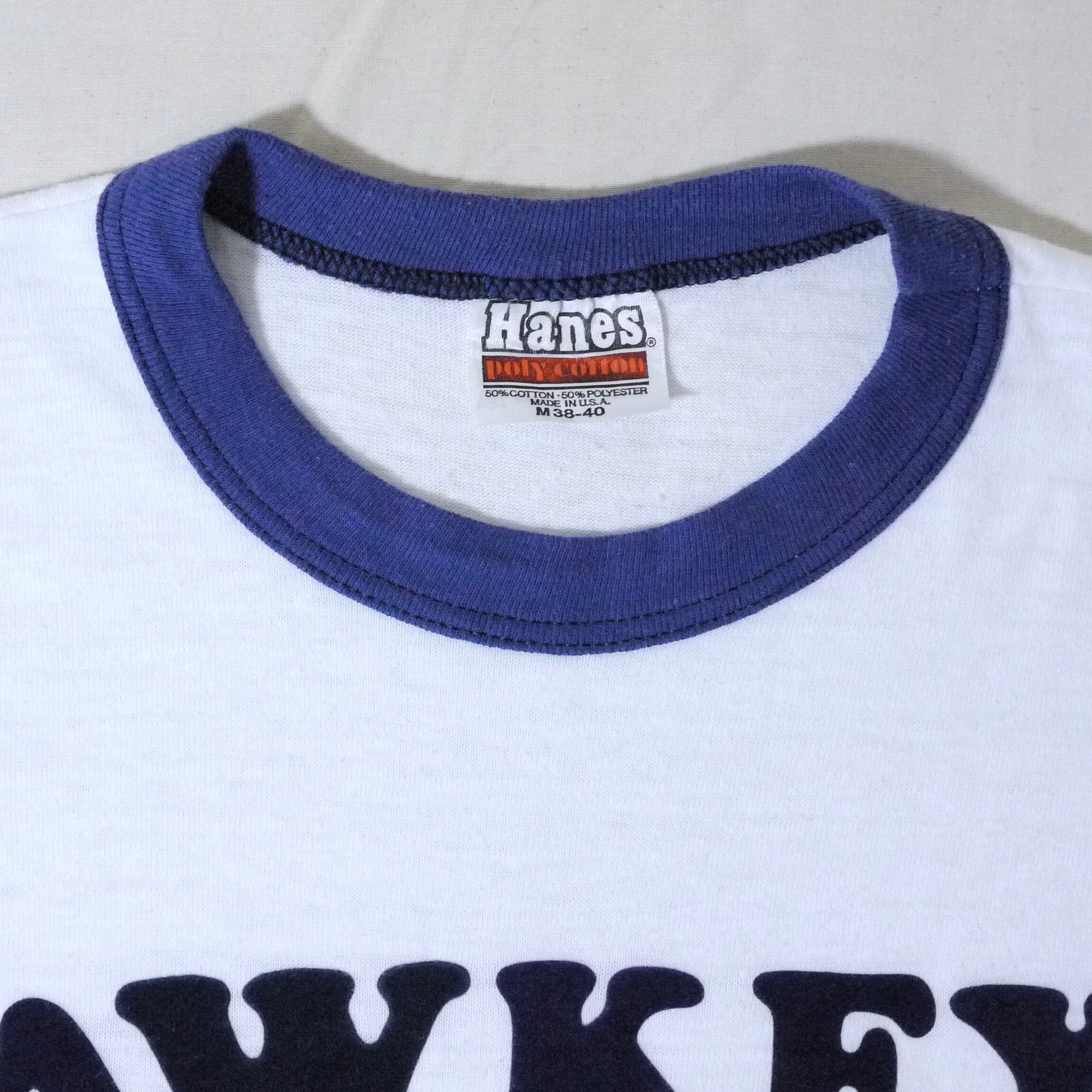 ホワイトカラーのボディにネイビーのリンガーTシャツ。