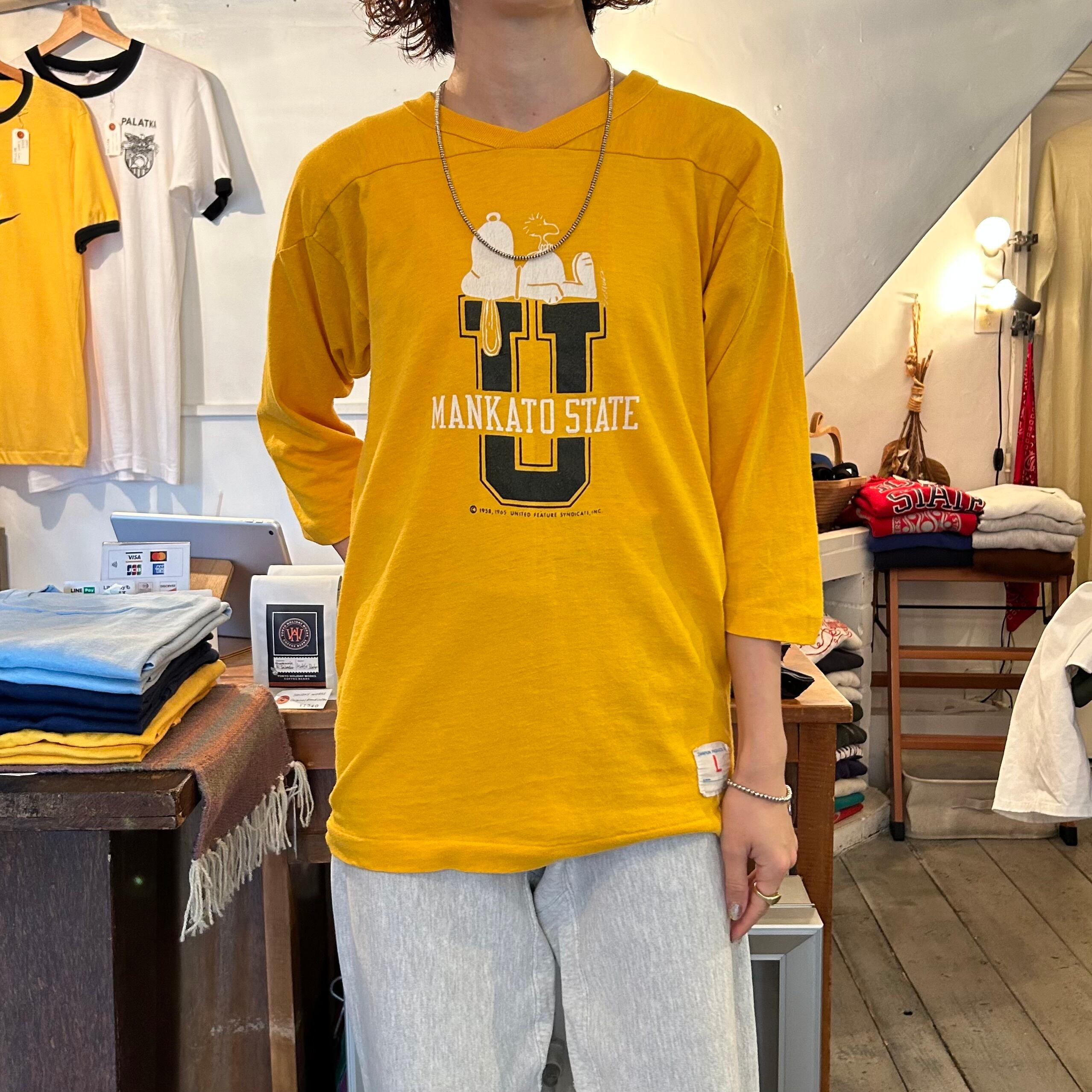 カレッジらしいグラフィックにスヌーピーがデザインされたプリント。
