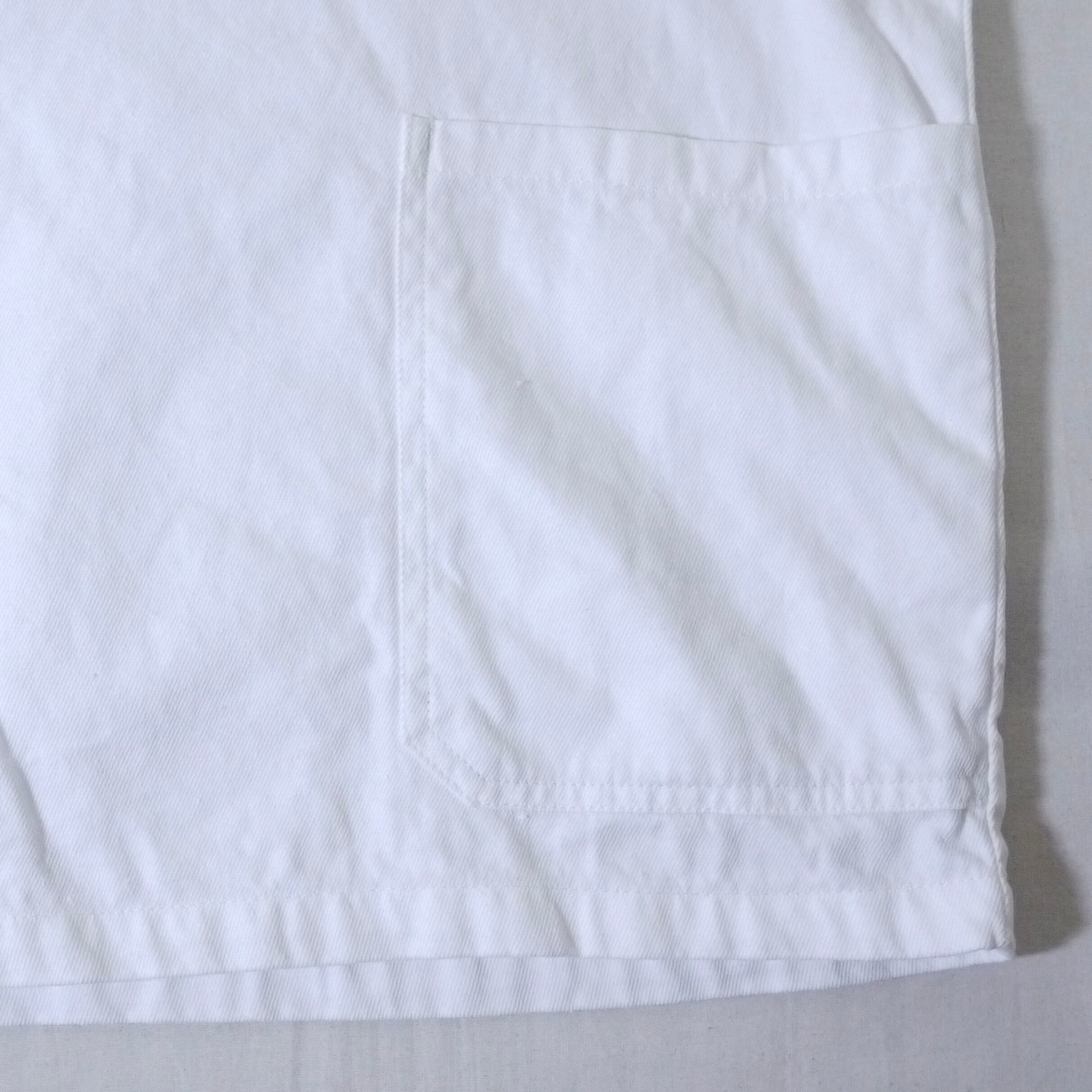 ホワイトカラーのコットンカバーオール。