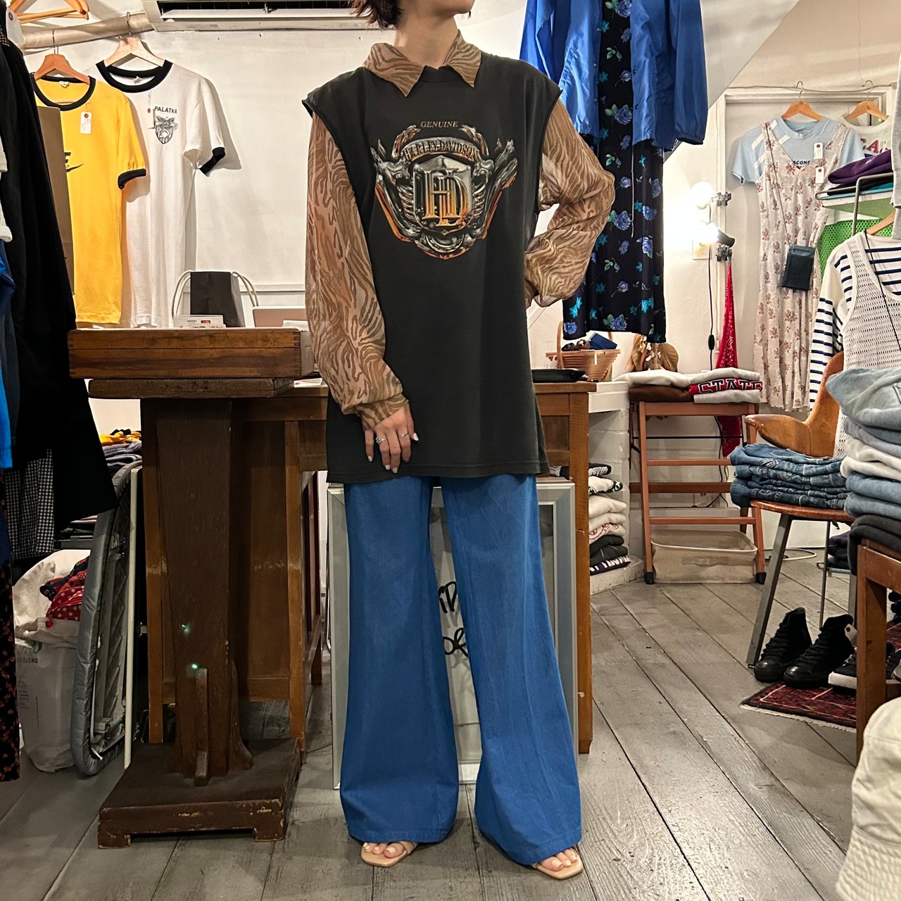 前所有者によって袖をカットオフしてノースリーブにカスタマイズされたアイテム。