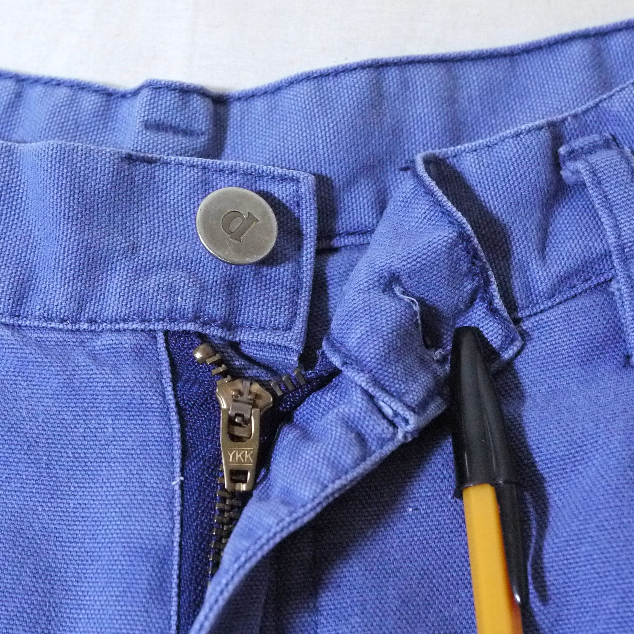 ブルー系カラーのパンツ。