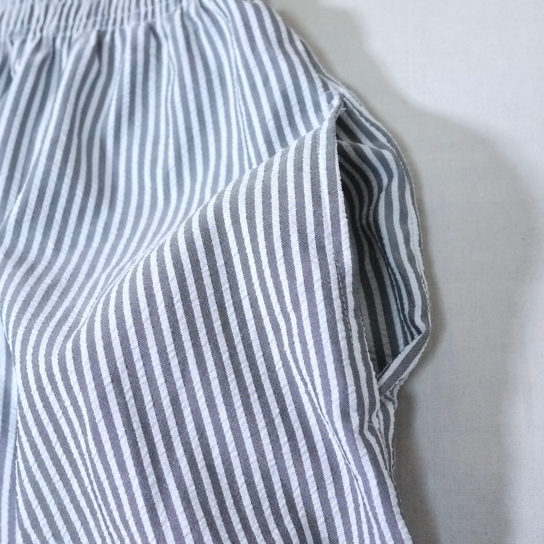 ライトグレー×ホワイトのストライプ柄イージーパンツ。