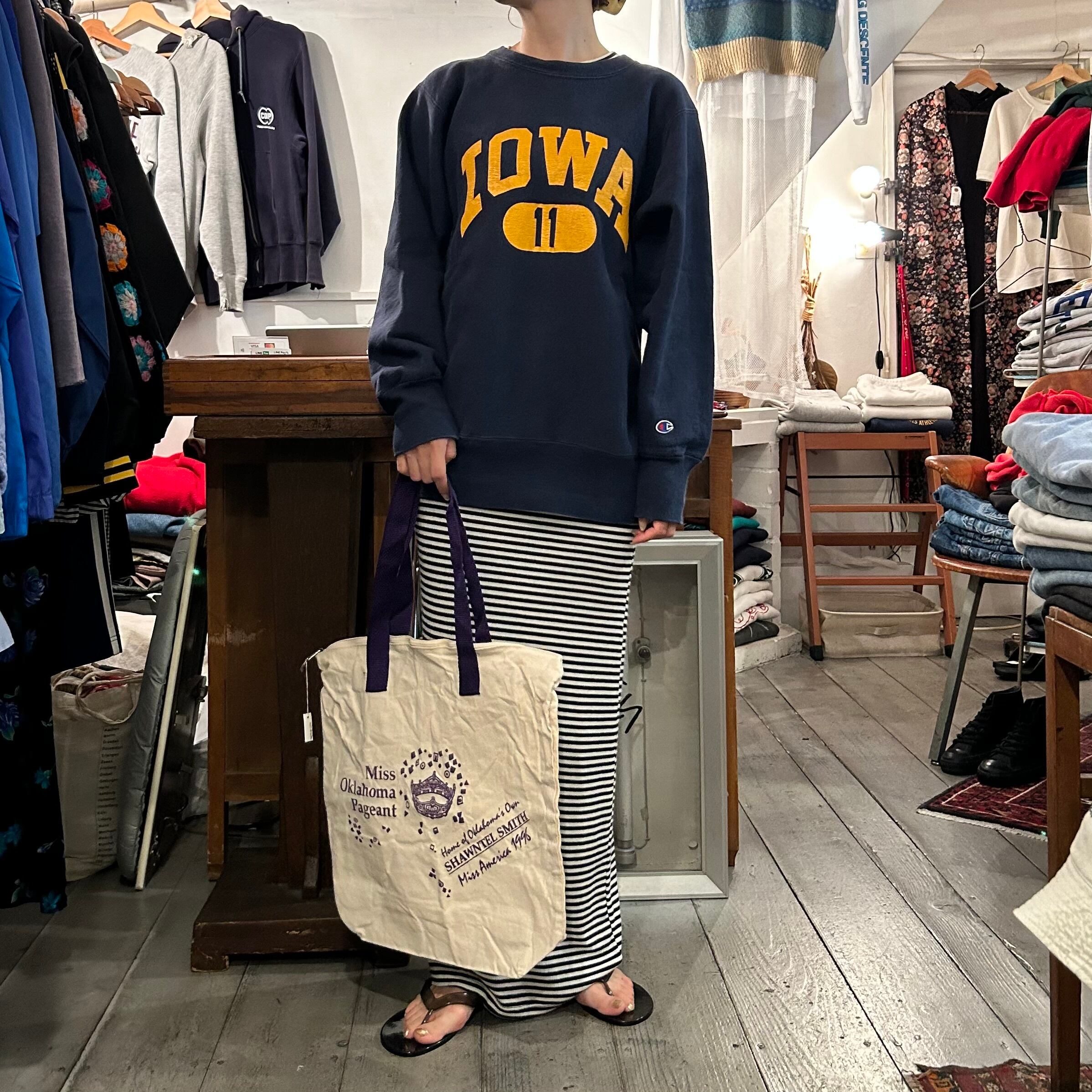 ネイビーのボディにカレッジプリントのリバースウィーブ。