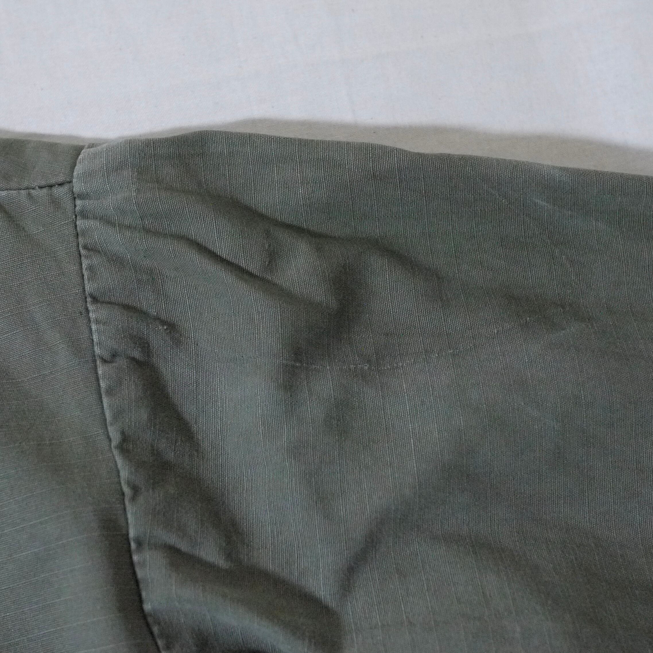 状態は、ウエストがシェイプするシルエットにリメイクされています。両胸と左袖にワッペンを外した跡。左袖にリペア。その他、全体的に経年による使用感はありますが、着用に問題はありません。