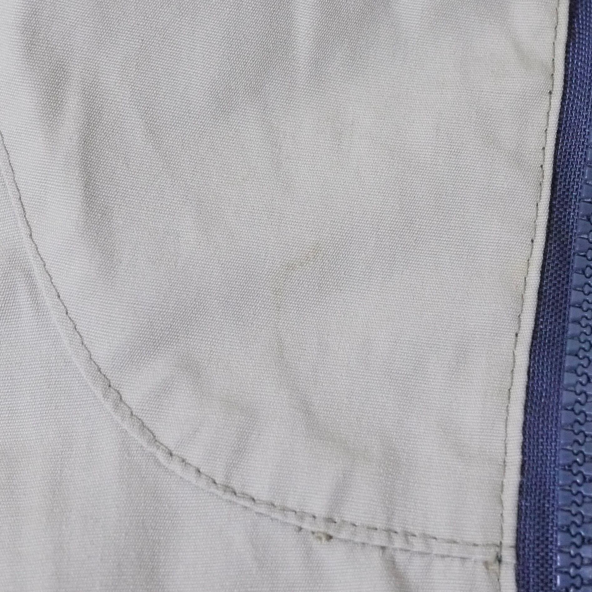 アメリカ製。素材表記タグ欠損のため詳細不明。コットンとポリエステルの混合のような生地感。ジッパーはネック部分がTALON、ポケットがYKK。