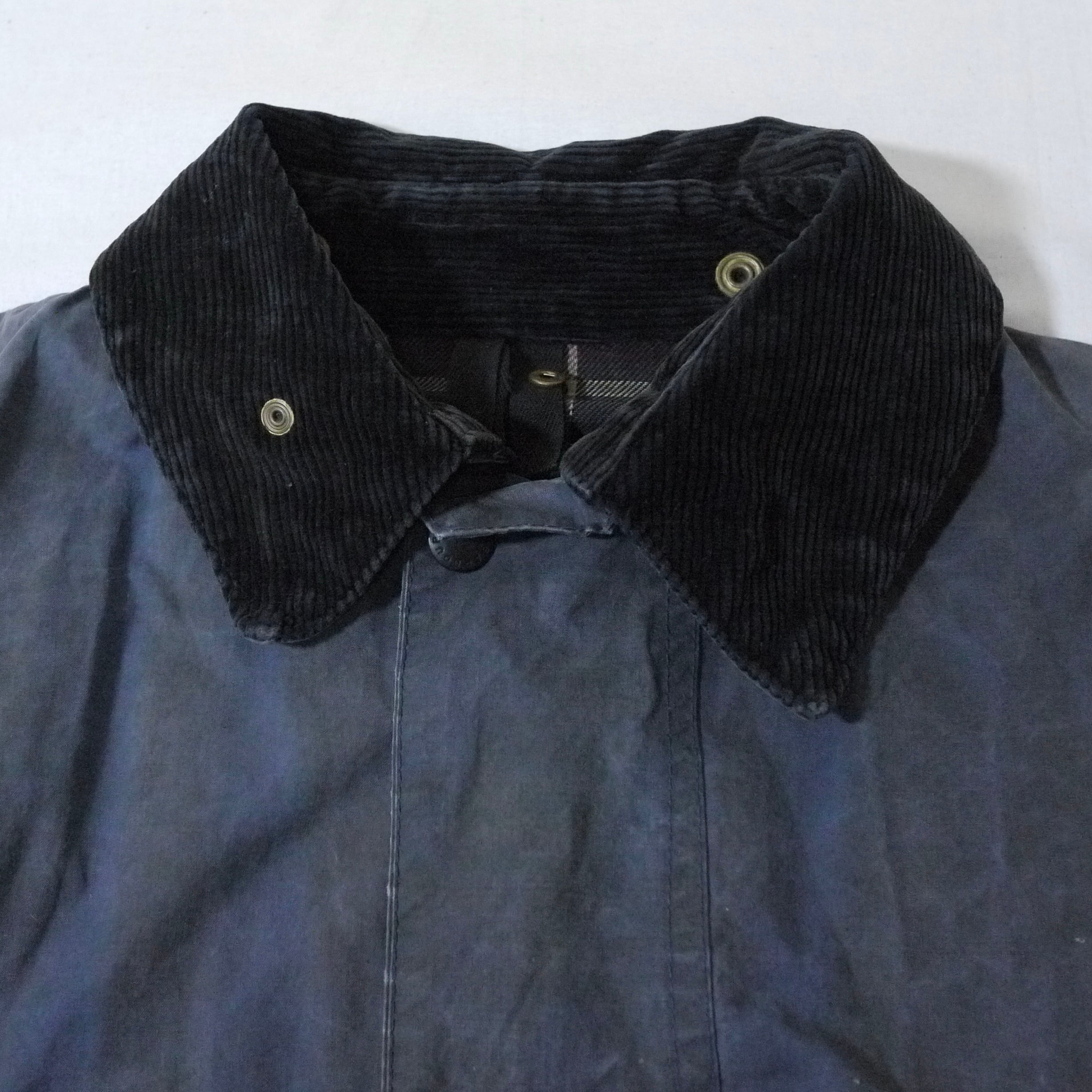 フェードしたネイビーのようなカラーのワックスコットンジャケット。