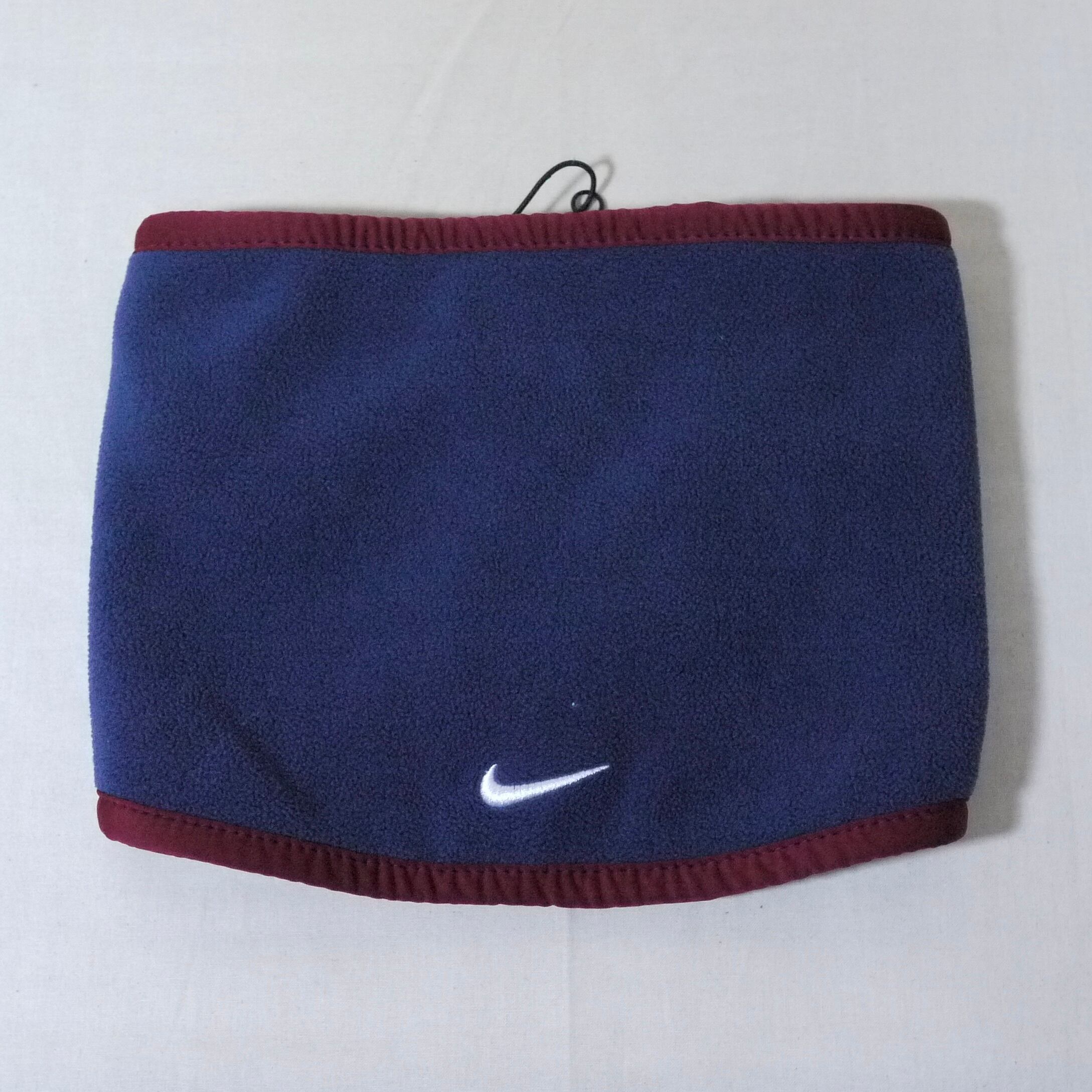 バーガンディ×ネイビーのフリースネックウォーマー。