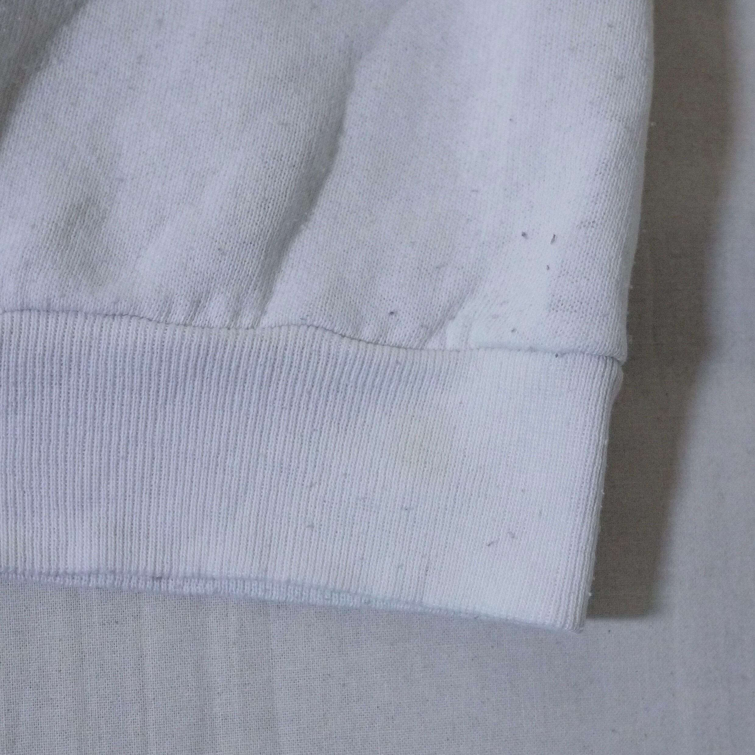 状態は、ネック周辺の生地が薄くなっています。プリント下部を中心に毛玉ができ始めています。裾のリブに薄らシミ。両袖のリブに汚れ。その他、経年による使用感がありますが、着用に問題はありません。コンディションにご理解頂ける方にお願いします。