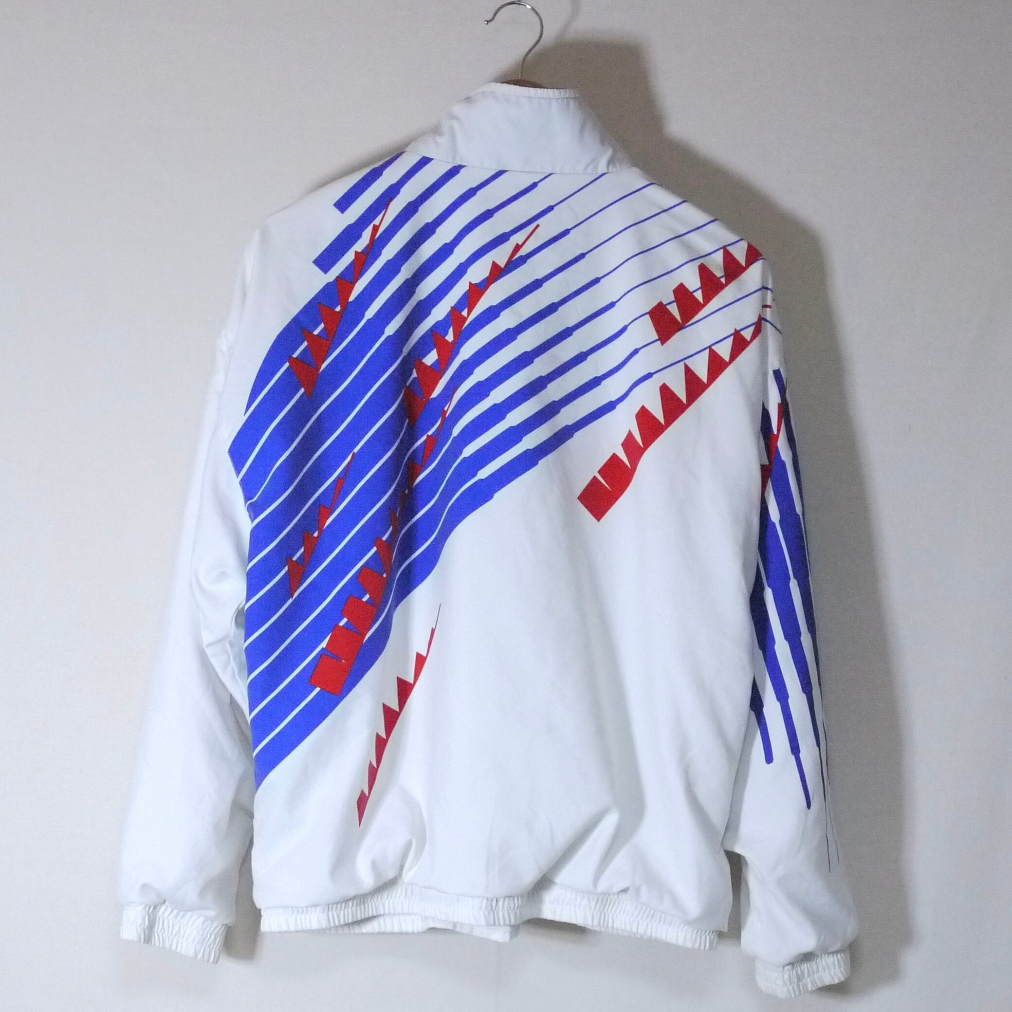 エンブレムや国旗が付いていないため、市販されていたアイテムかと思われますが、サッカー日本代表がドーハの悲劇の頃に着用していたジャージと同じデザイン。