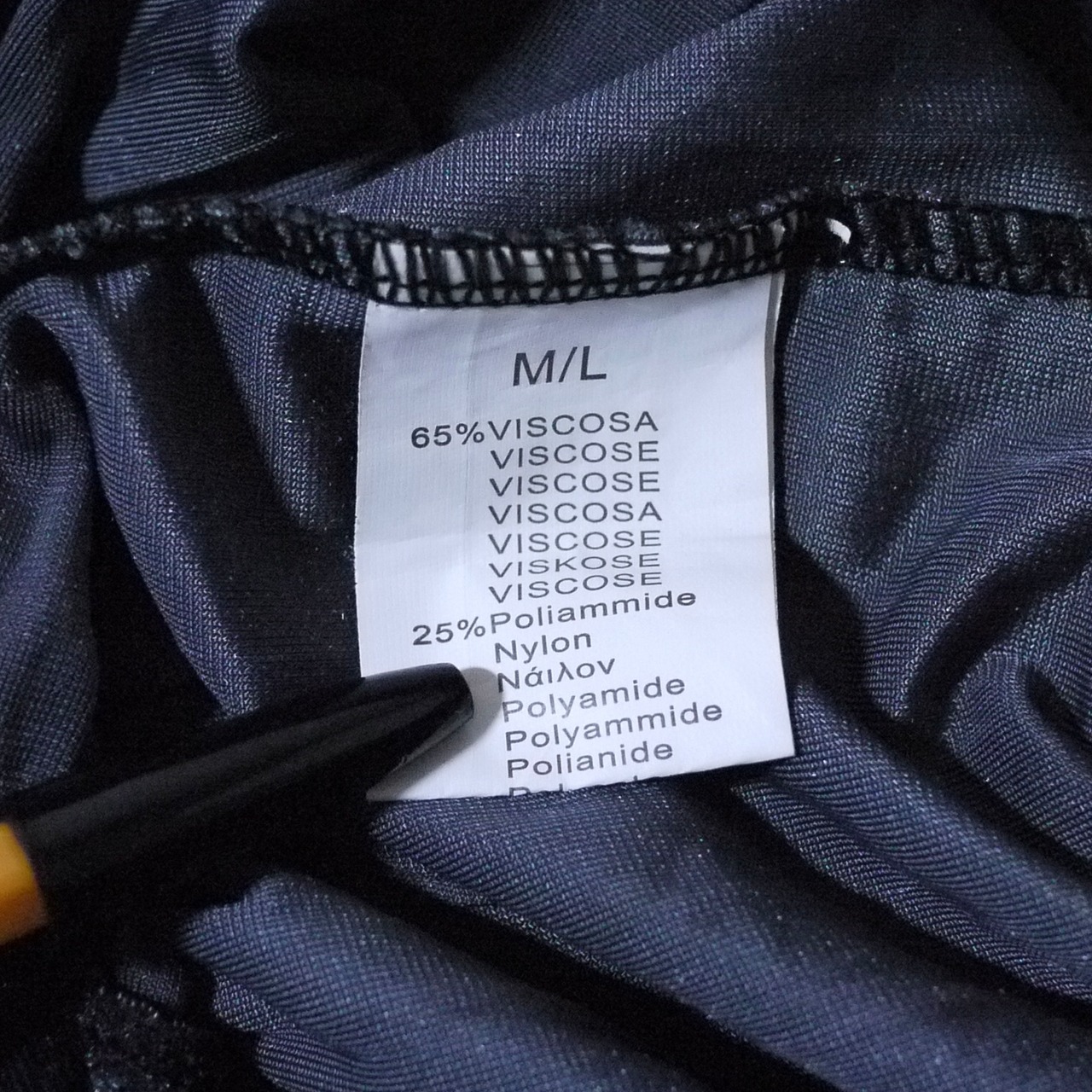 レーヨン65%、ナイロン25%、エラスタン10%。