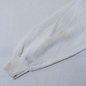状態は、ネックのリブの後ろ側にリペア。両面とも裾付近を中心に全体的に汚れ。両袖に汚れ。その他、経年による使用感はありますが、着用に問題はありません。コンディションにご理解頂き、アジとして捉えて頂ける方にお願いします。