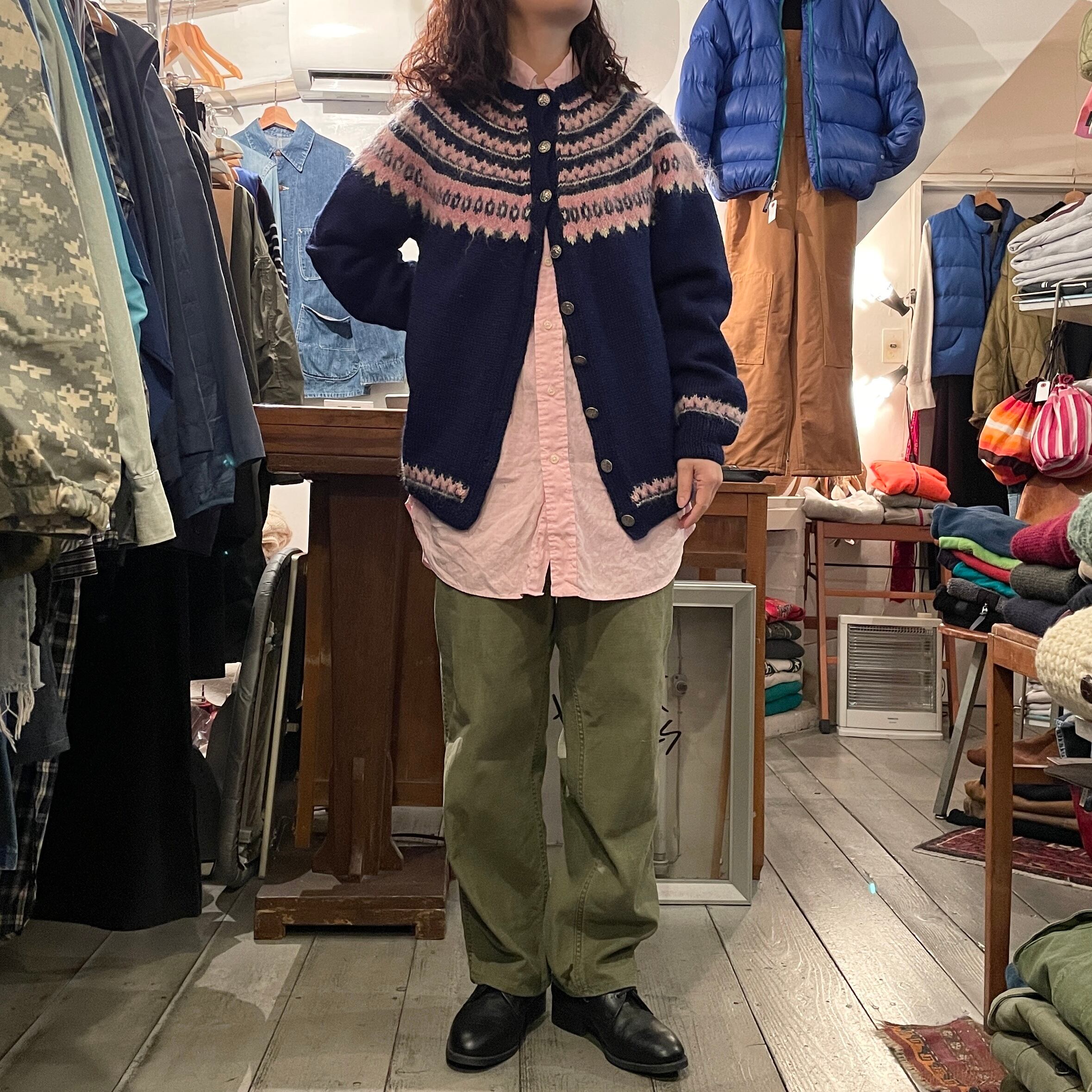 ネイビー×ピンクの配色が、いい意味でノルディックな雰囲気をマイルドにしてくれてスタイリッシュに着られる一着。