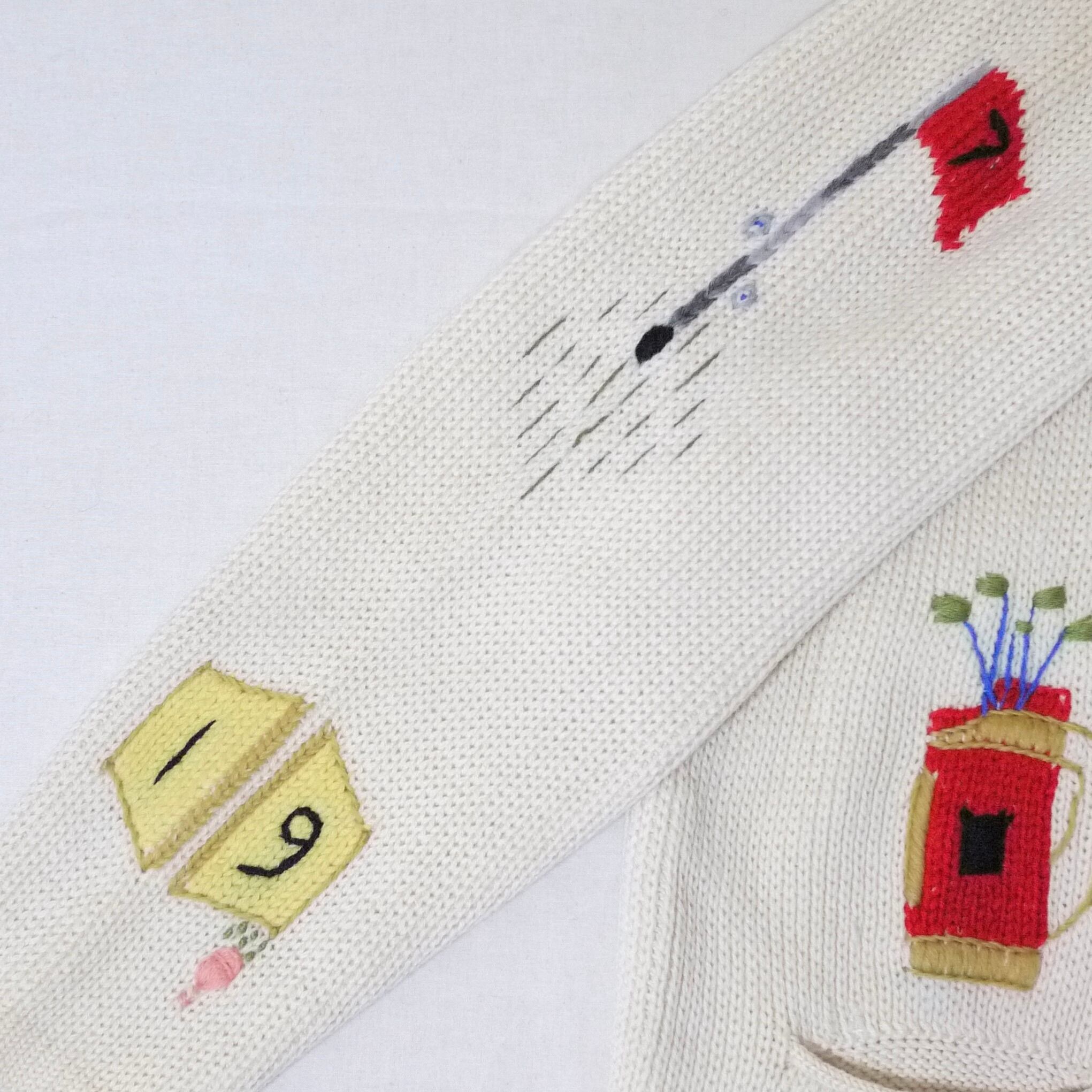 ゴルフモチーフのカラフルな刺繍デザインが印象的。