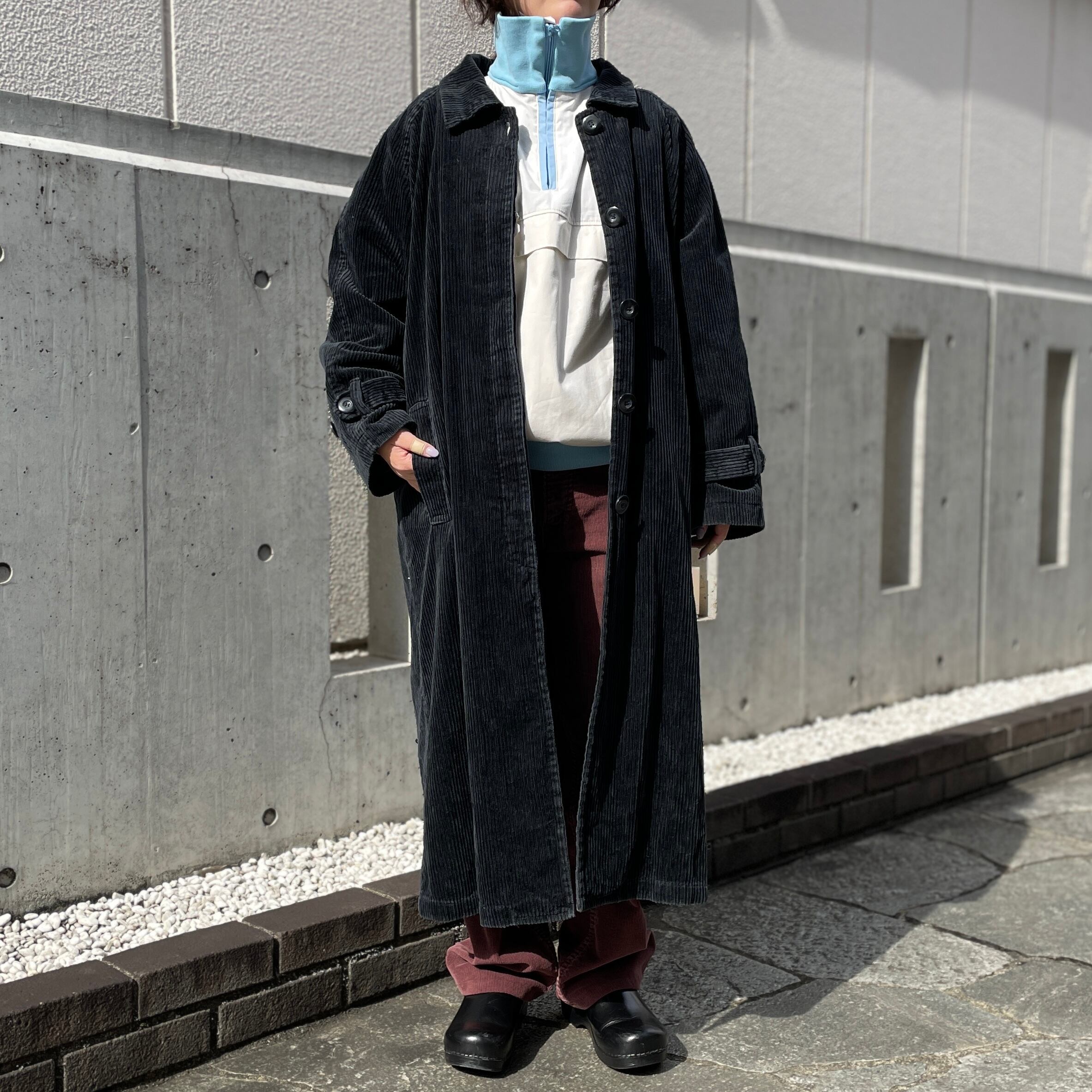 マルーンカラーの646コーデュロイパンツ。