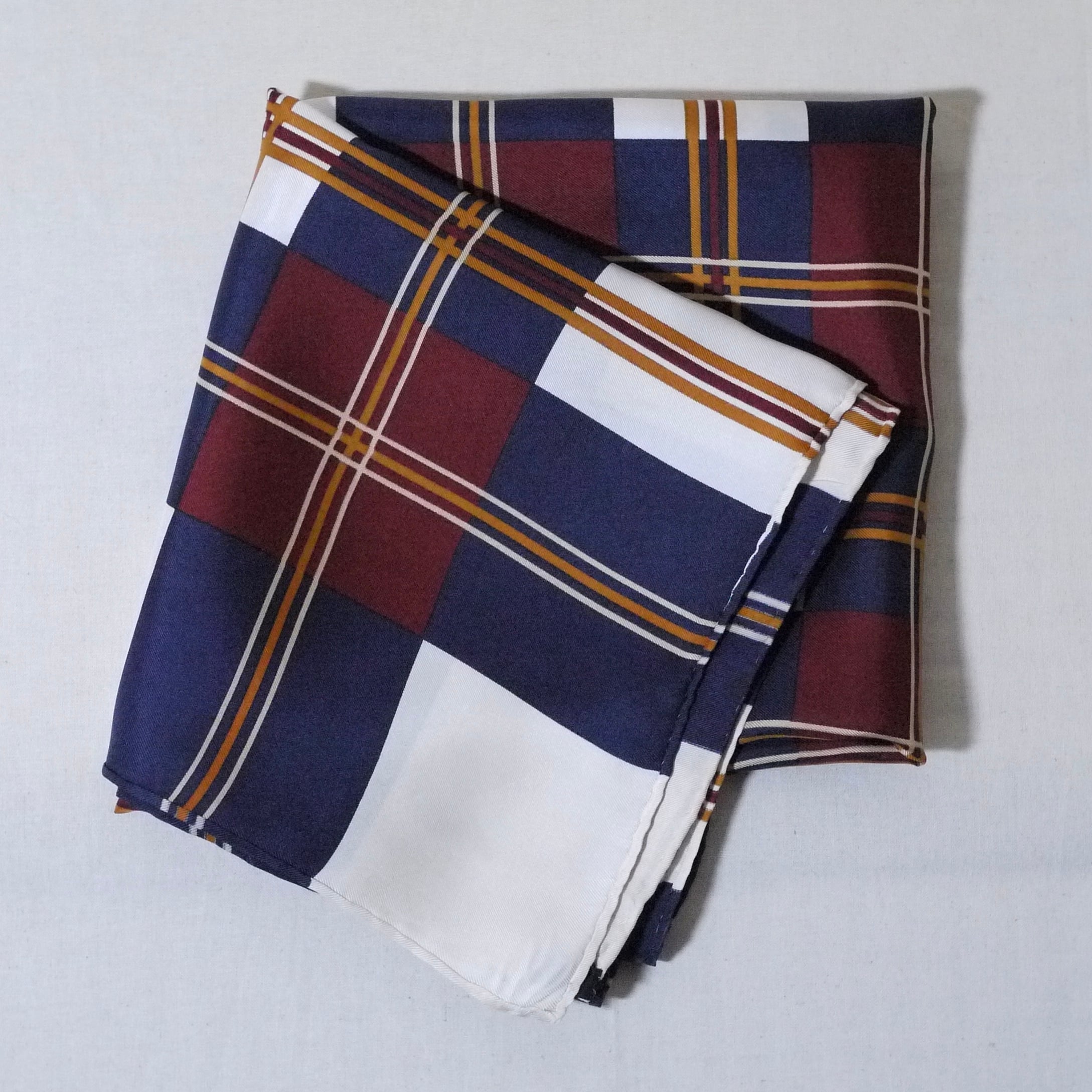 60年代以前のヴィンテージスカーフで品質の良いシルクスカーフに用いられていたディテールですが、こちらの商品の詳しい年代は不明です。