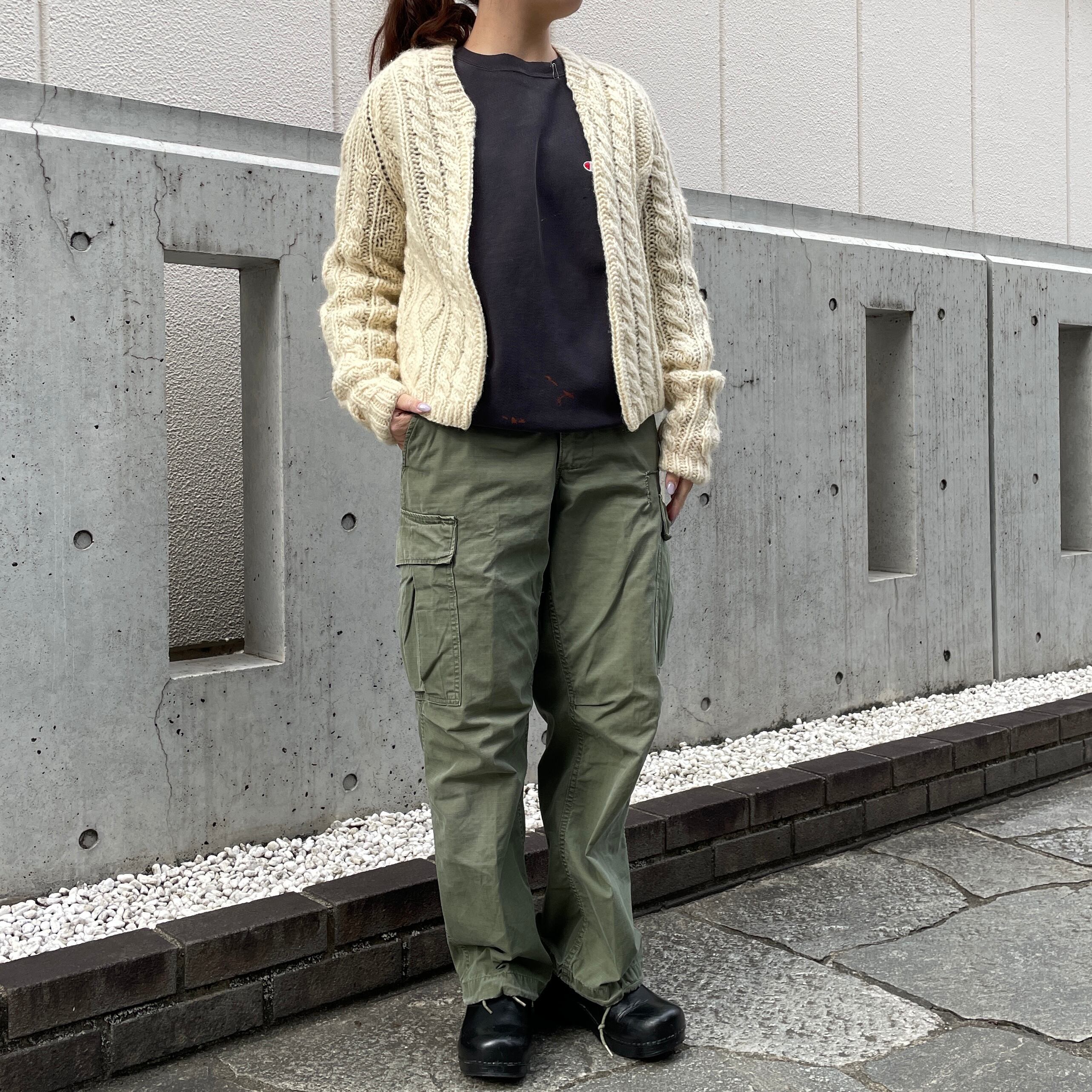 Sears、生成りカラーのフィッシャーマンニットカーディガン。