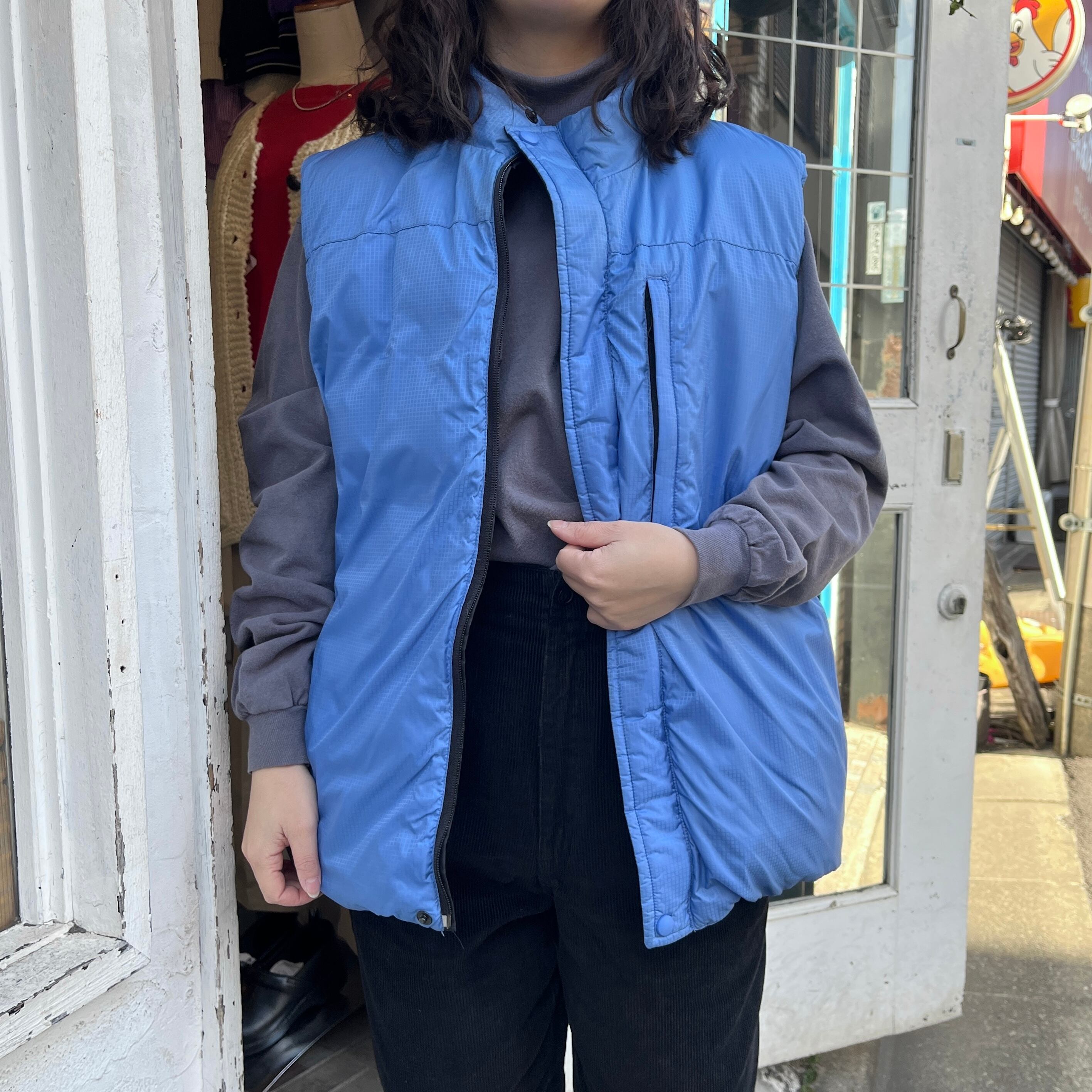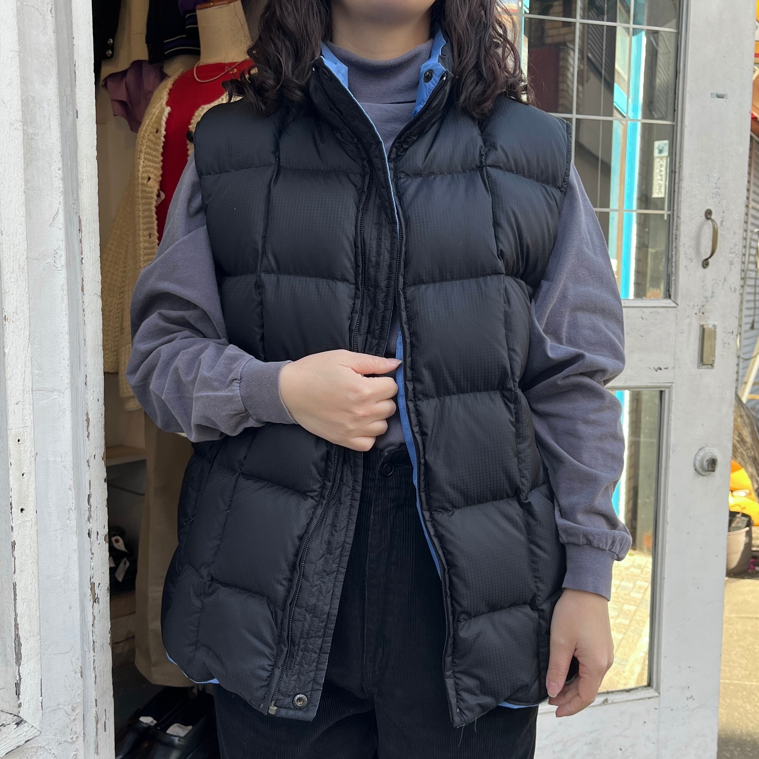 ブラック×ライトブルーのリバーシブルダウンベスト。