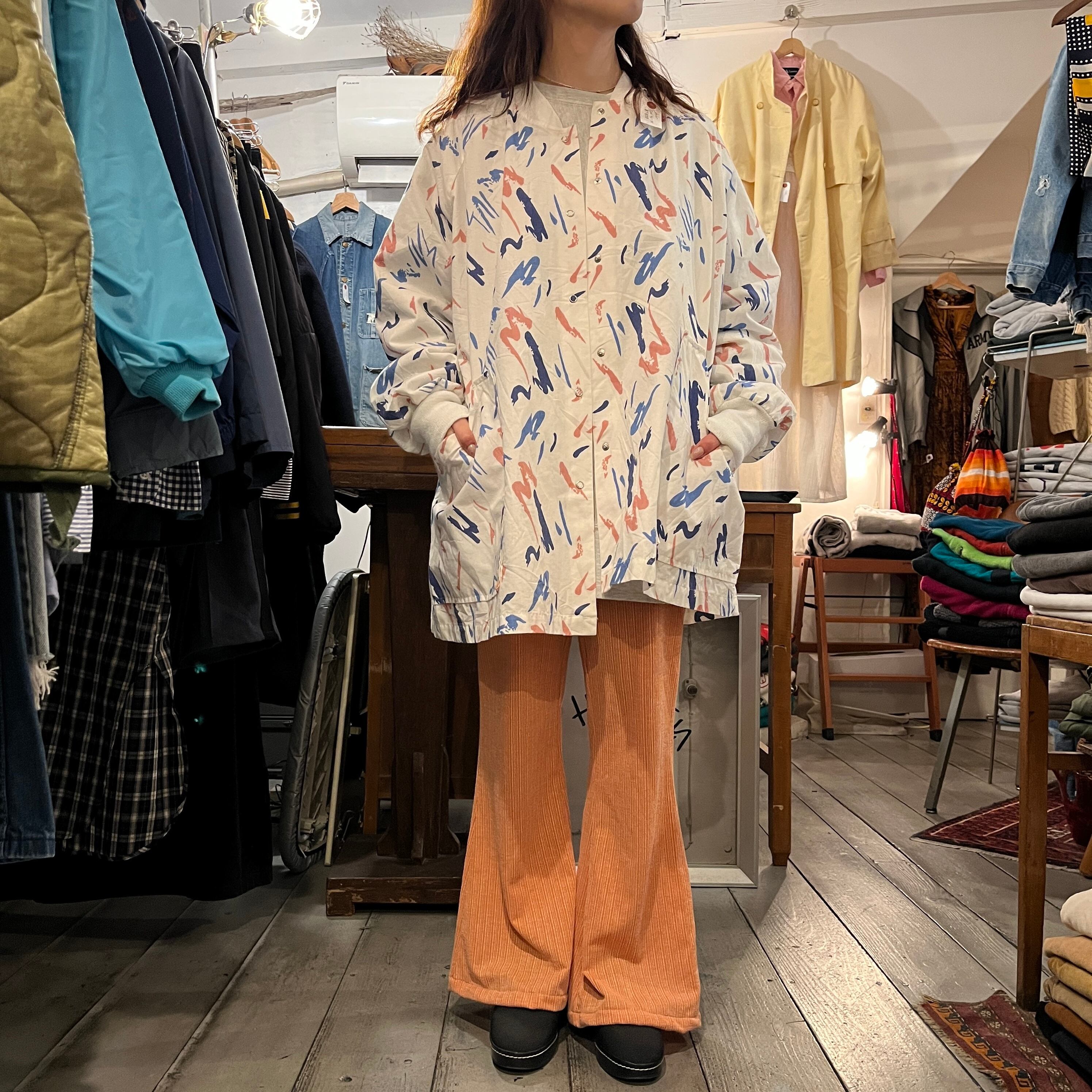 オレンジ系カラーのイージーパンツ。
