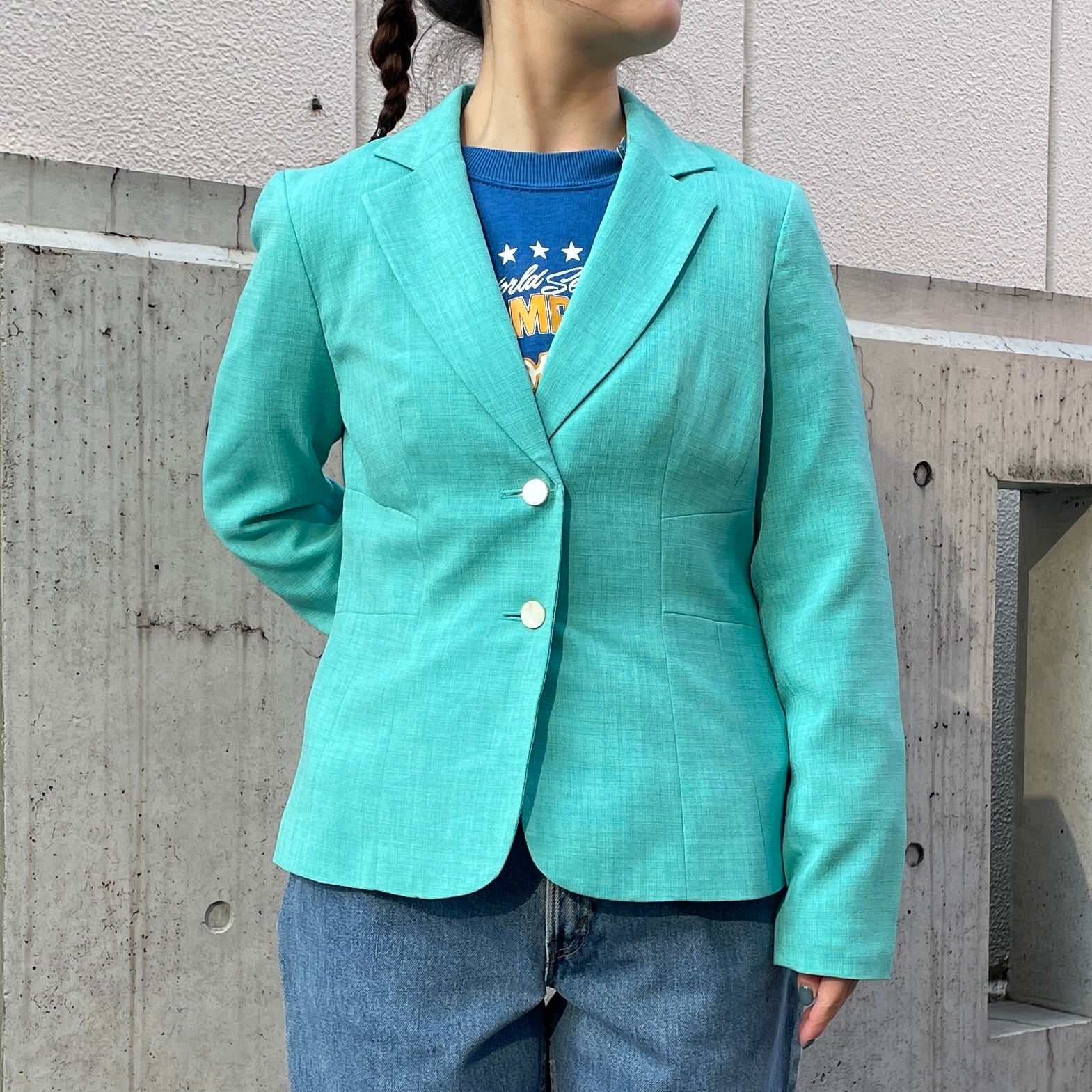 グリーン系カラーのジャケット。